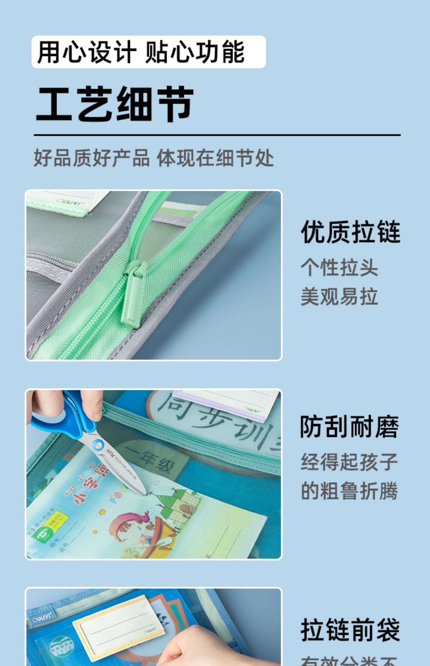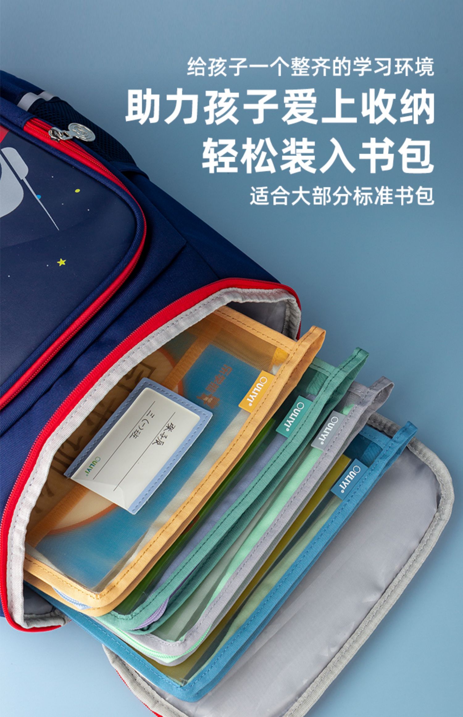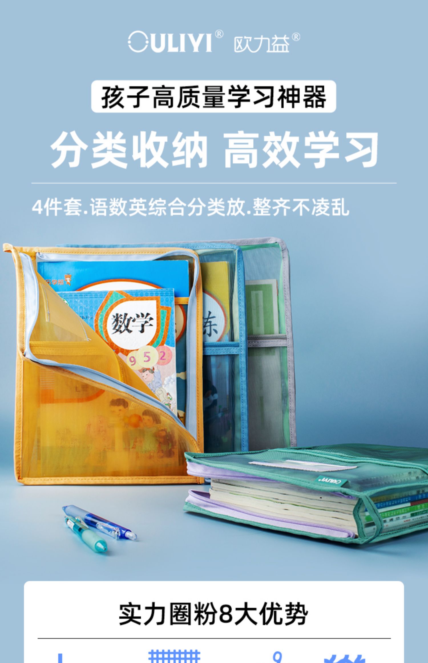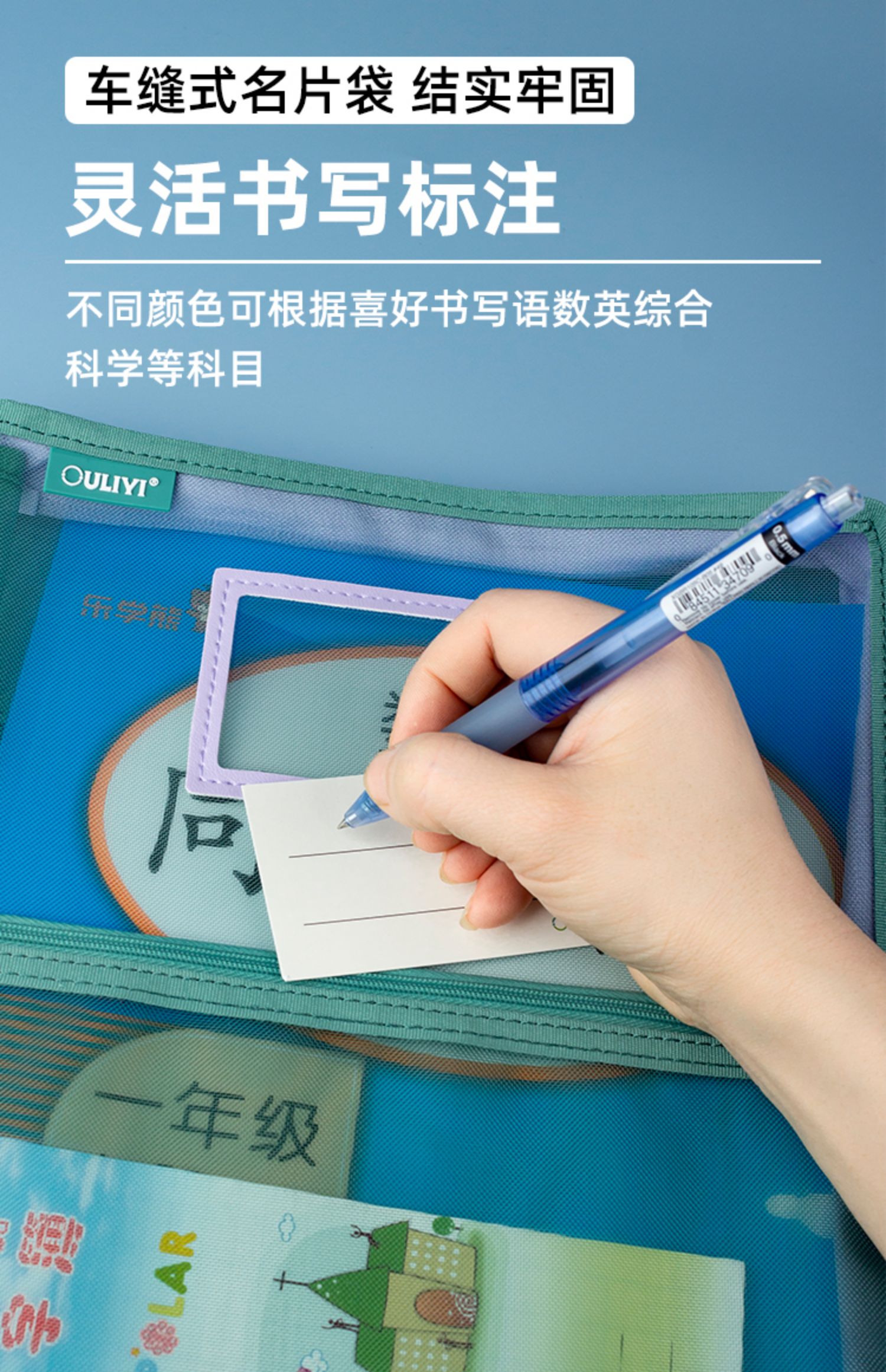 欧力益科目分类袋小学生学科收纳袋课本试卷文件袋拉链式A4透明高颜值资料袋L型三层书袋大容量手提包