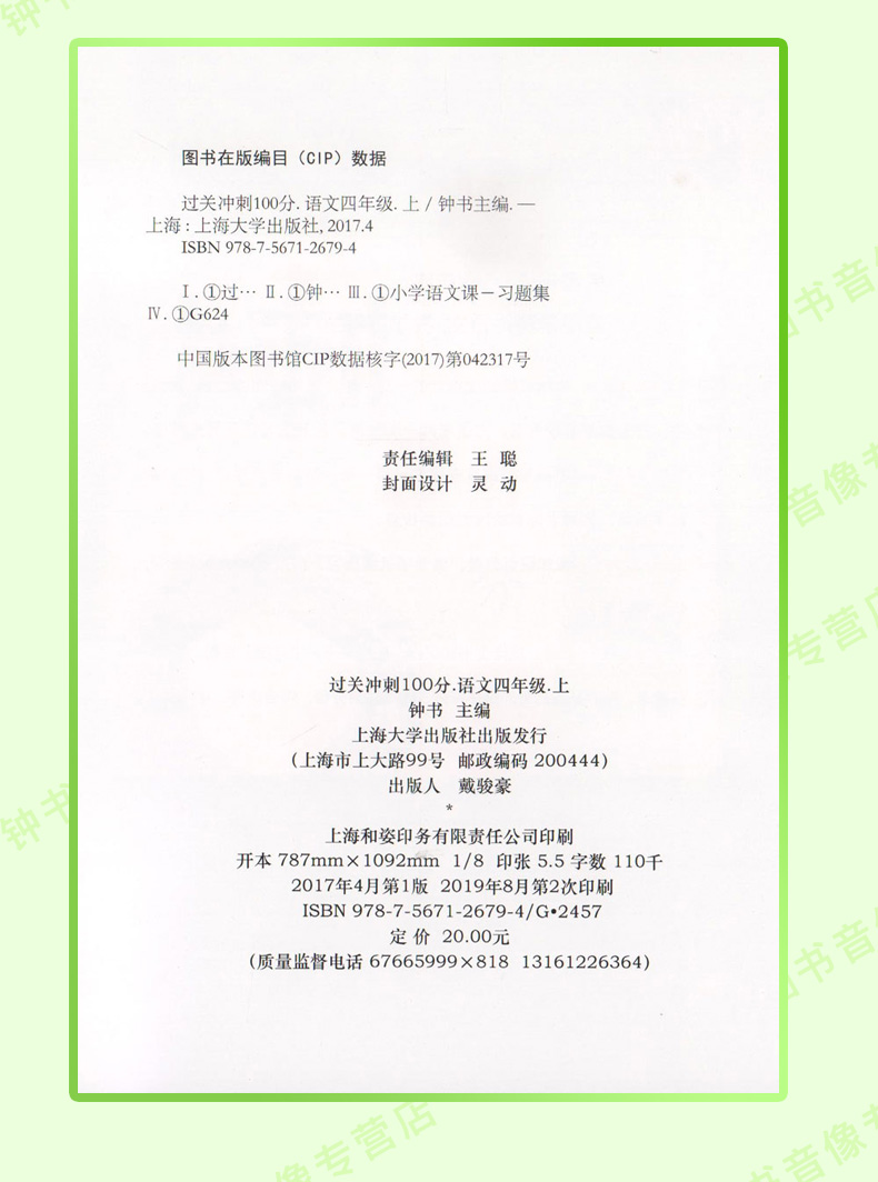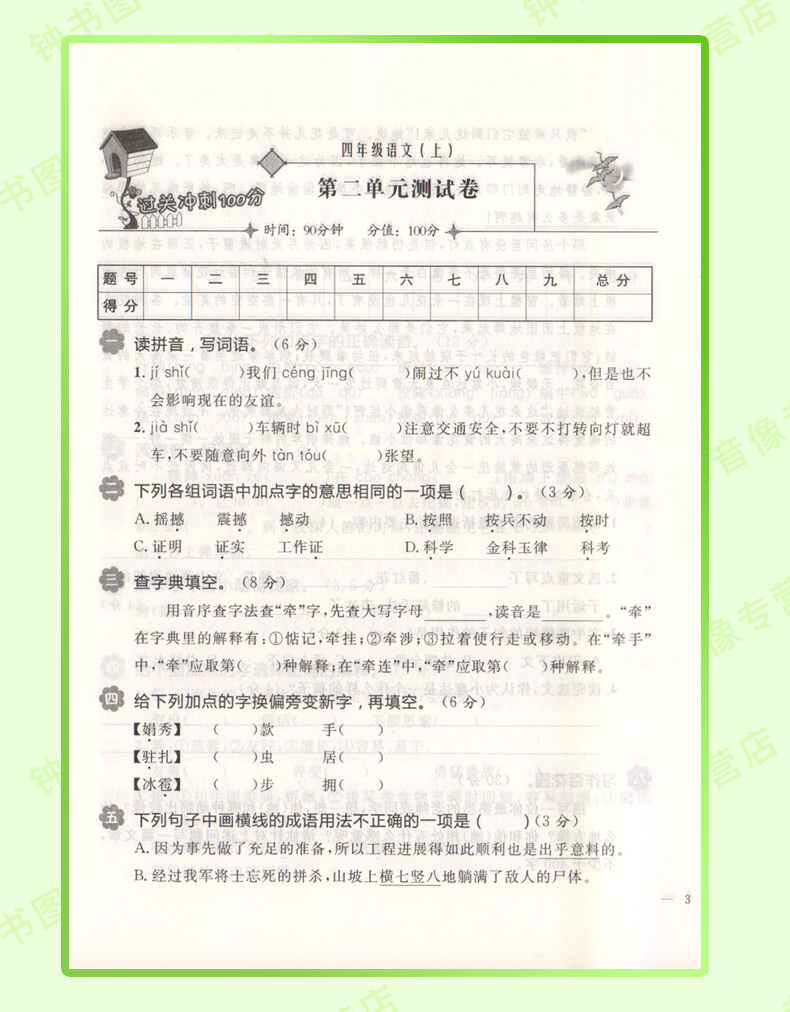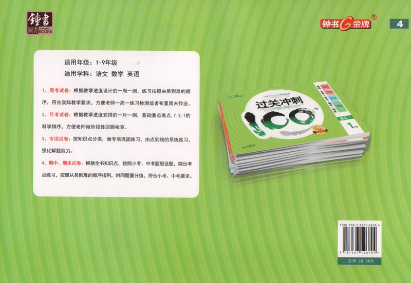 钟书金牌 过关冲刺100分 部编版 语文 4年级上/四年级第一学期 语文 4语上 统编版上海小学教辅期中期末单元测试卷课外练习卷