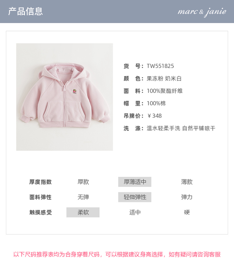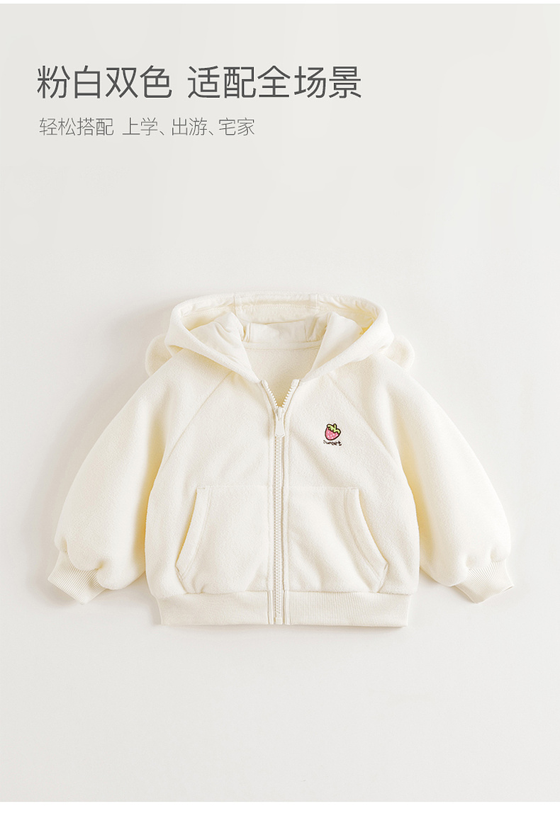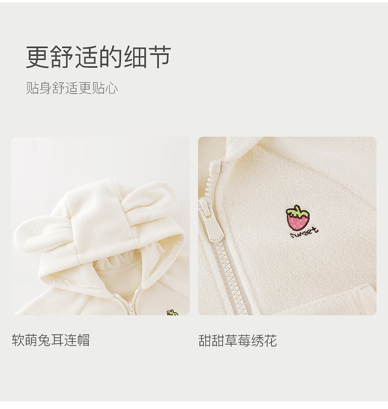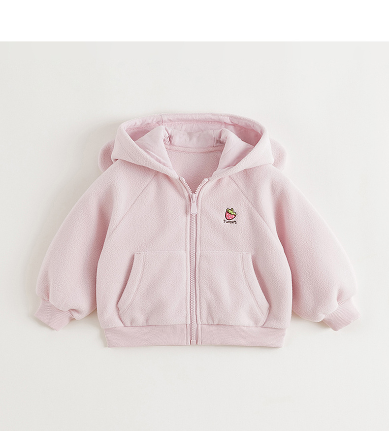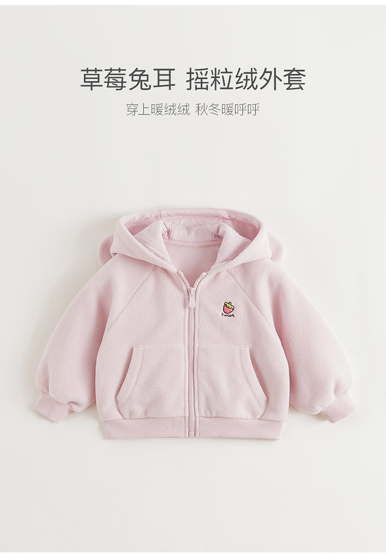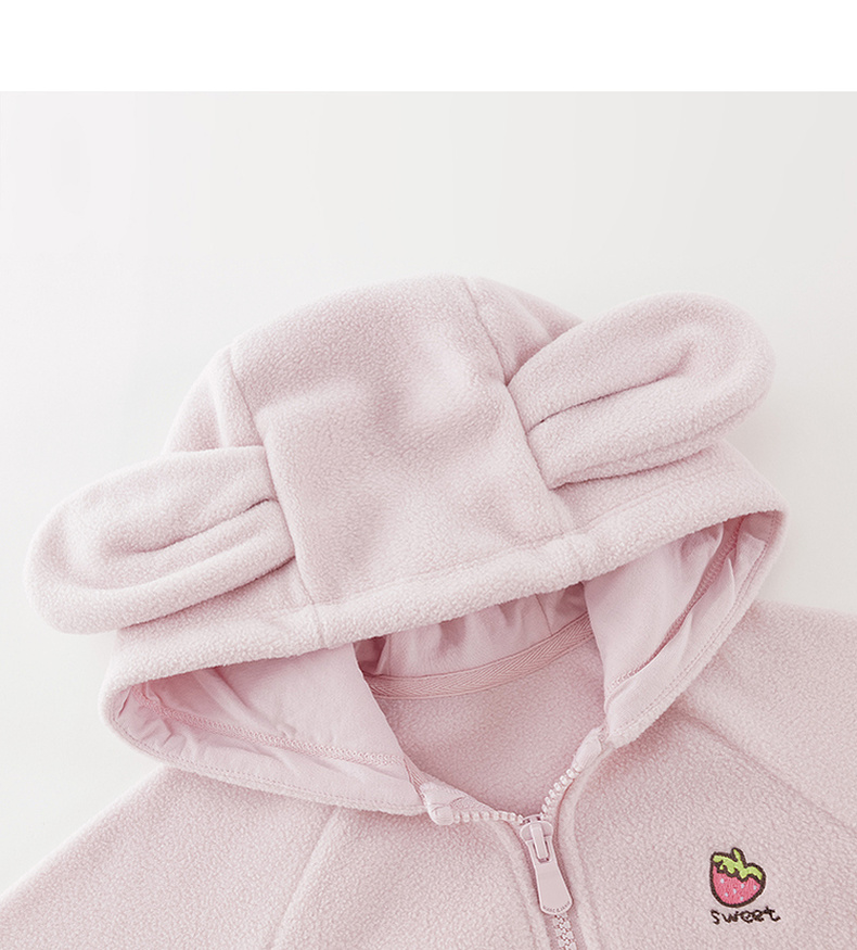 马克珍妮女童草莓兔耳摇粒绒外套2025年秋冬新款551825