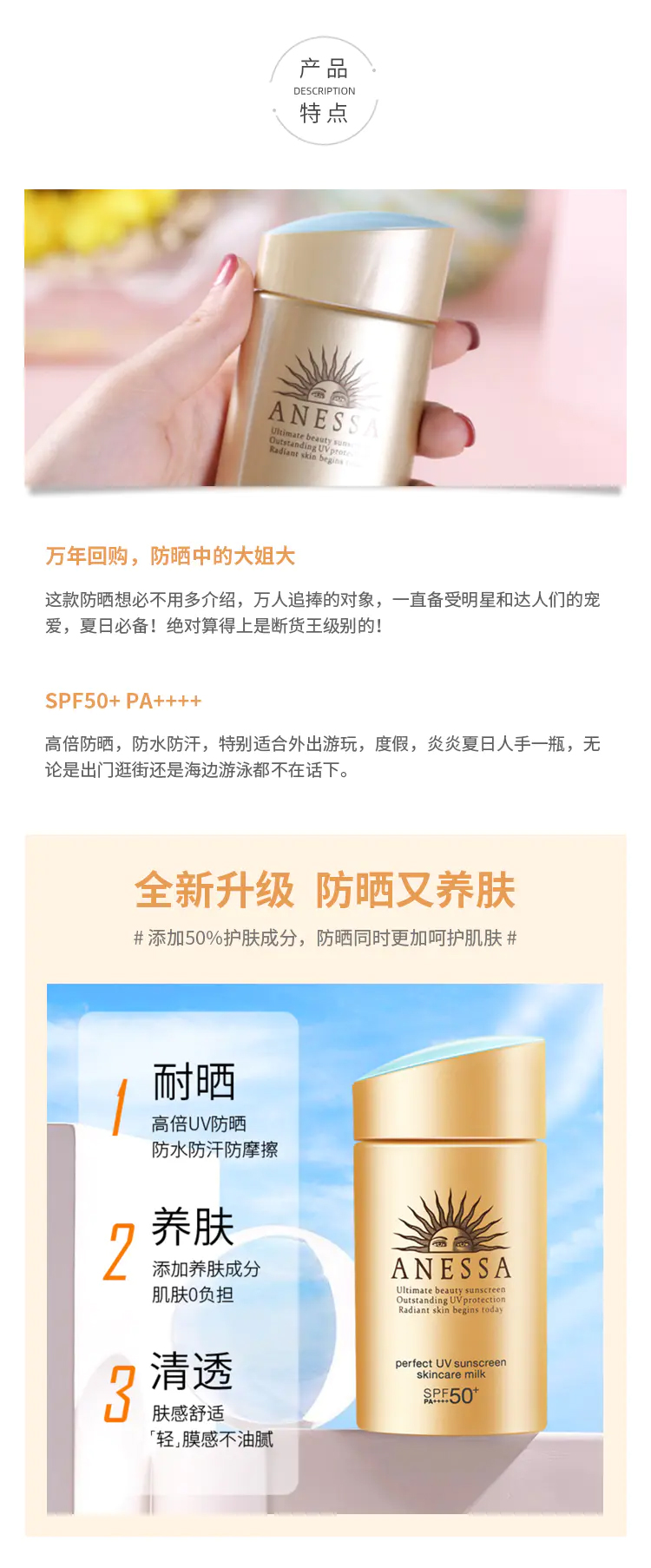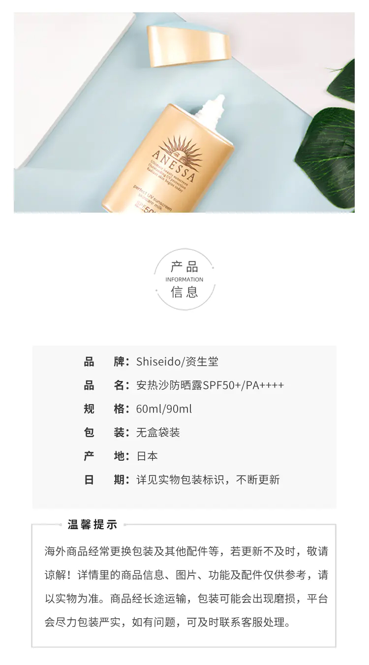 资生堂 安耐晒小金瓶防晒霜 安热沙防晒乳面部防紫外线 SHISEIDO/shiseido