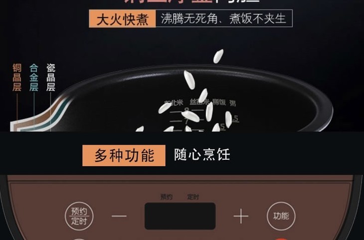 九阳(509502 )(Joyoung)电饭煲电饭锅大容量智能预约多功能大功率F-50FZ06 黑色
