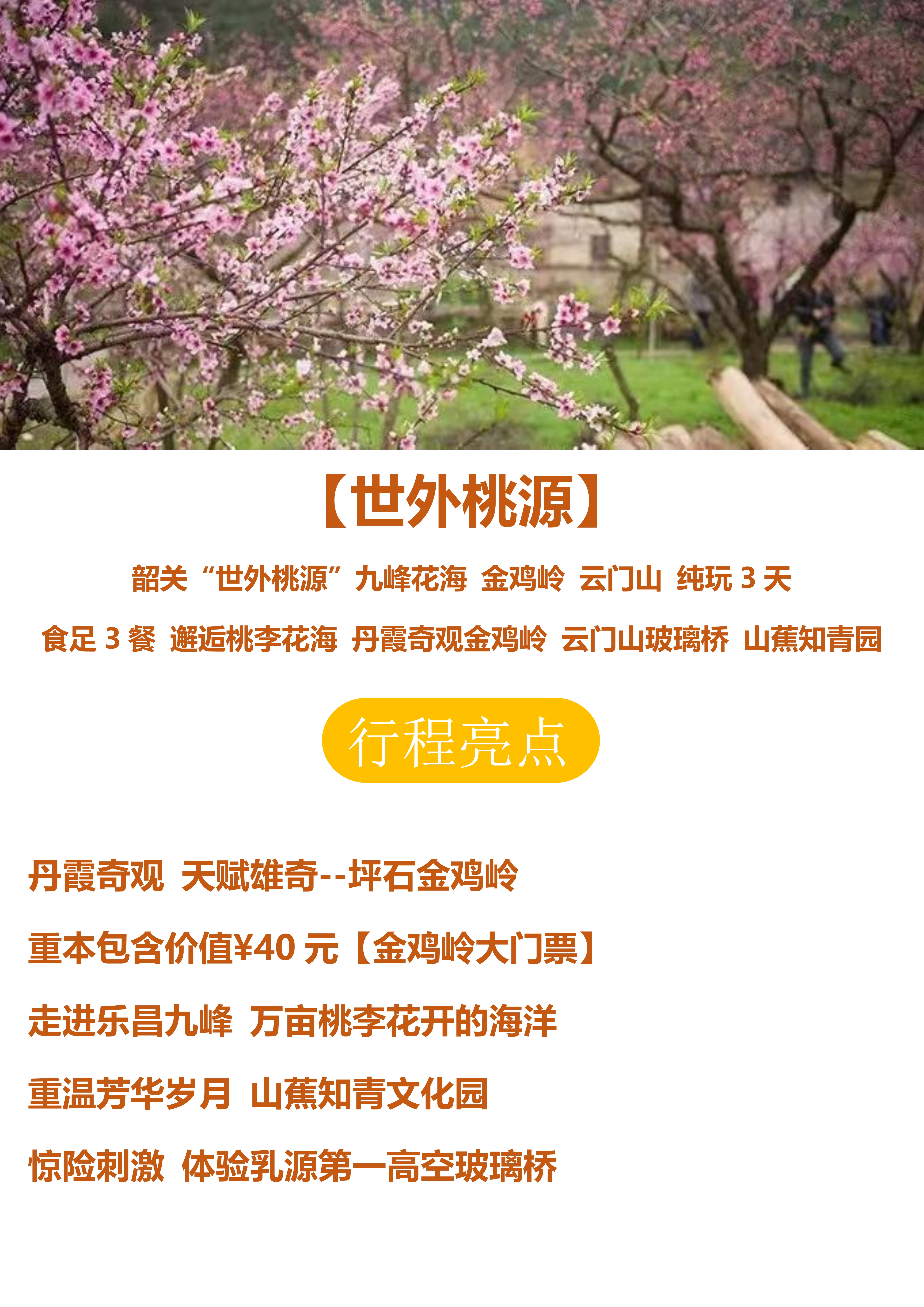 【世外桃源】 韶关“世外桃源”九峰花海 金鸡岭 云门山 纯玩3天