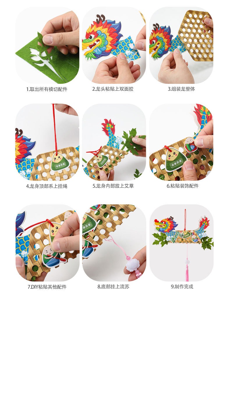 【12.9元任选2款龙舟挂件】端午节龙舟手工diy龙舟不织布挂饰儿童玩具制作材料包幼儿园