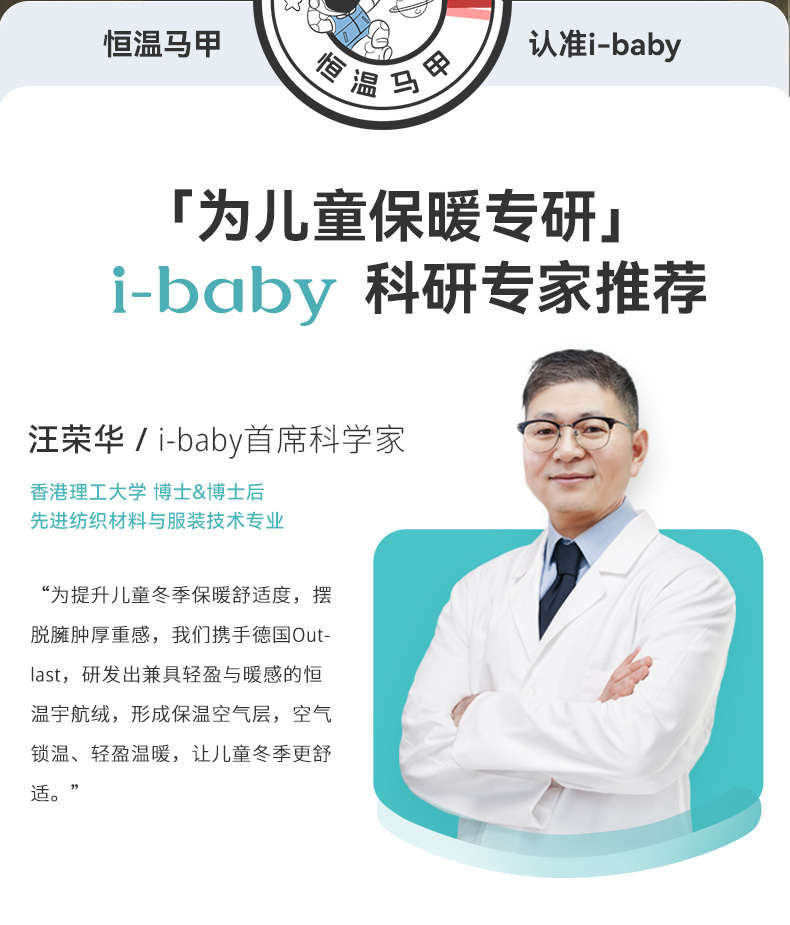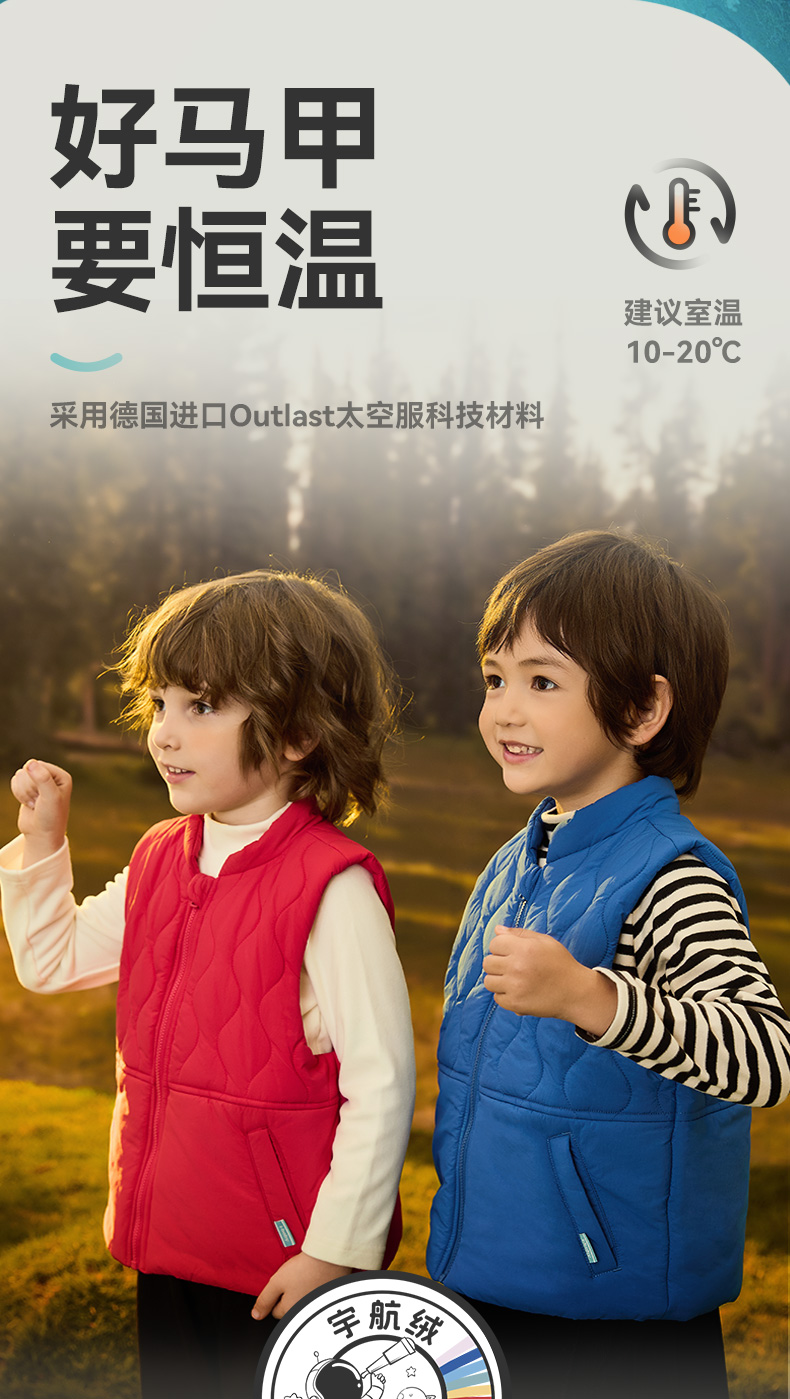 【秒杀 99元】i-baby四防恒温宇航绒立领儿童秋冬保暖马甲