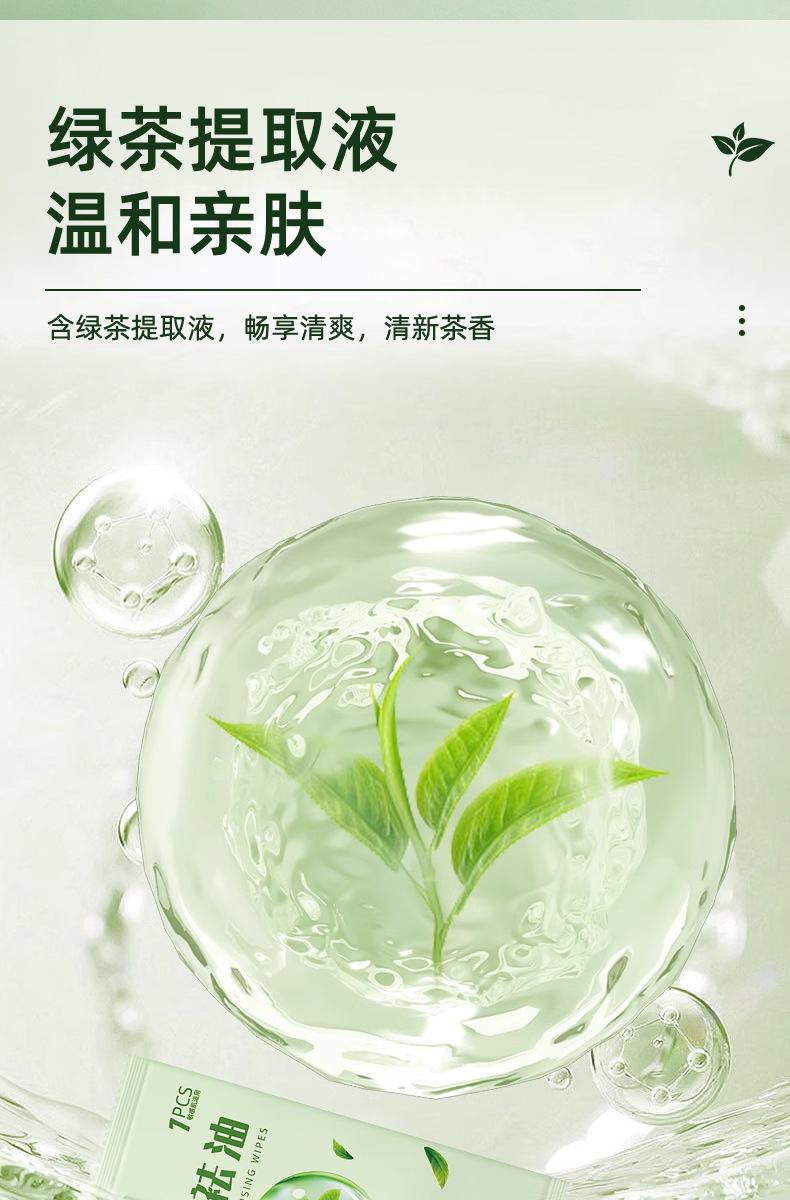 「买1送1,9.9到手2包!单包20片」绿茶祛油洁面湿巾 擦脸擦汗清洁免洗手口湿巾单片独立包装旅游用品 商品图3