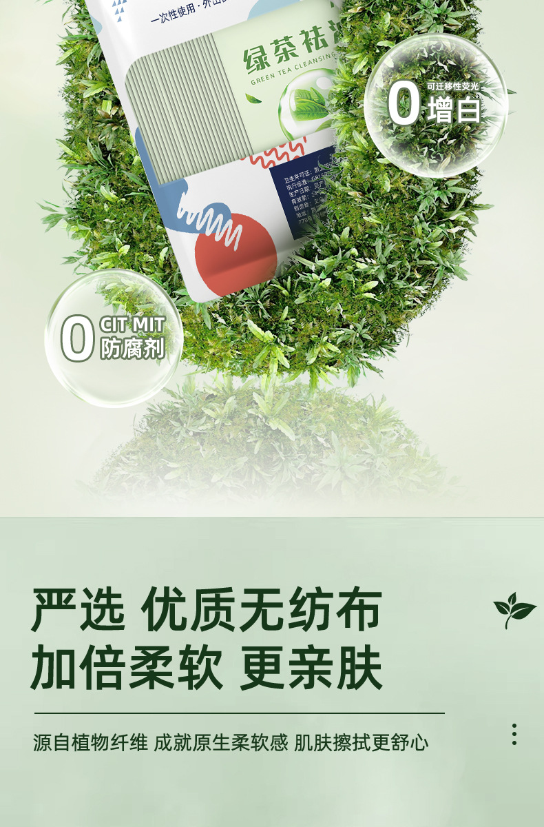 「买1送1,9.9到手2包!单包20片」绿茶祛油洁面湿巾 擦脸擦汗清洁免洗手口湿巾单片独立包装旅游用品 商品图0