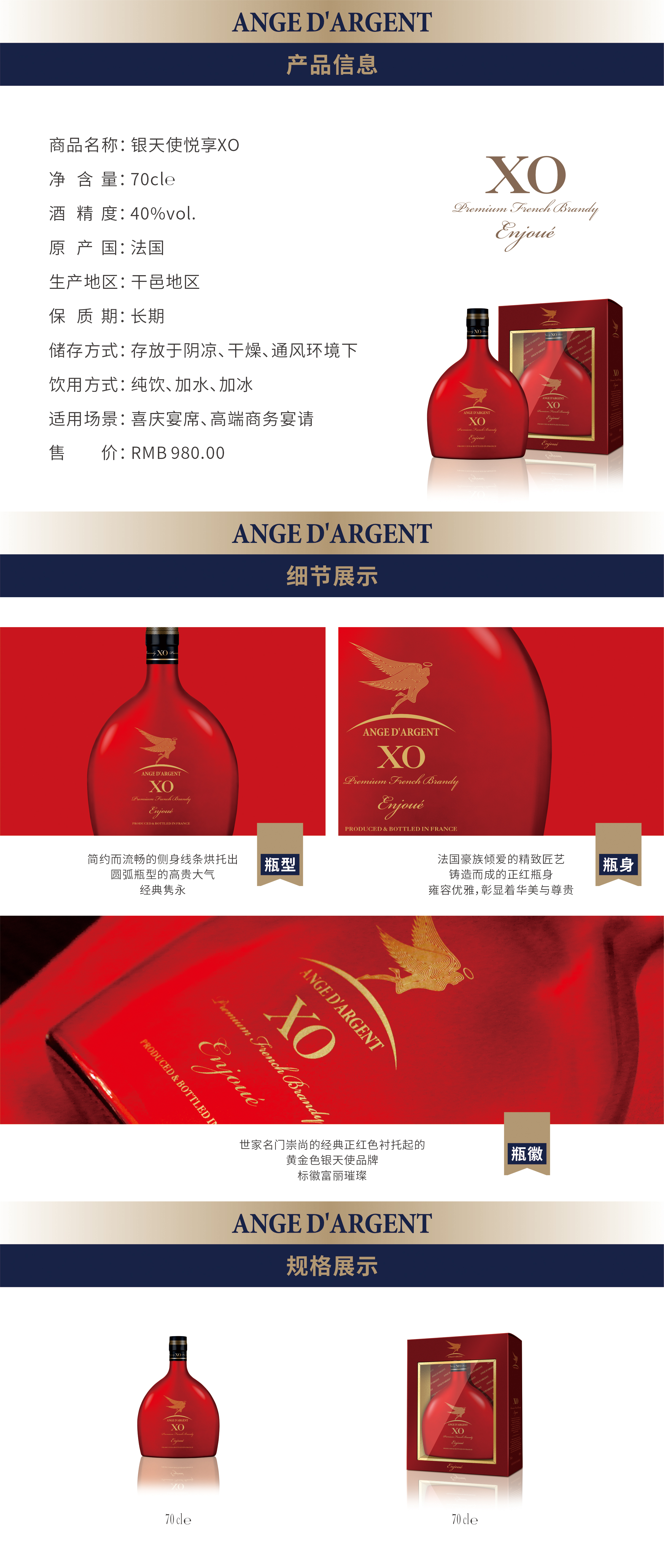 银天使悦享XO 700ml 法国原瓶进口洋酒