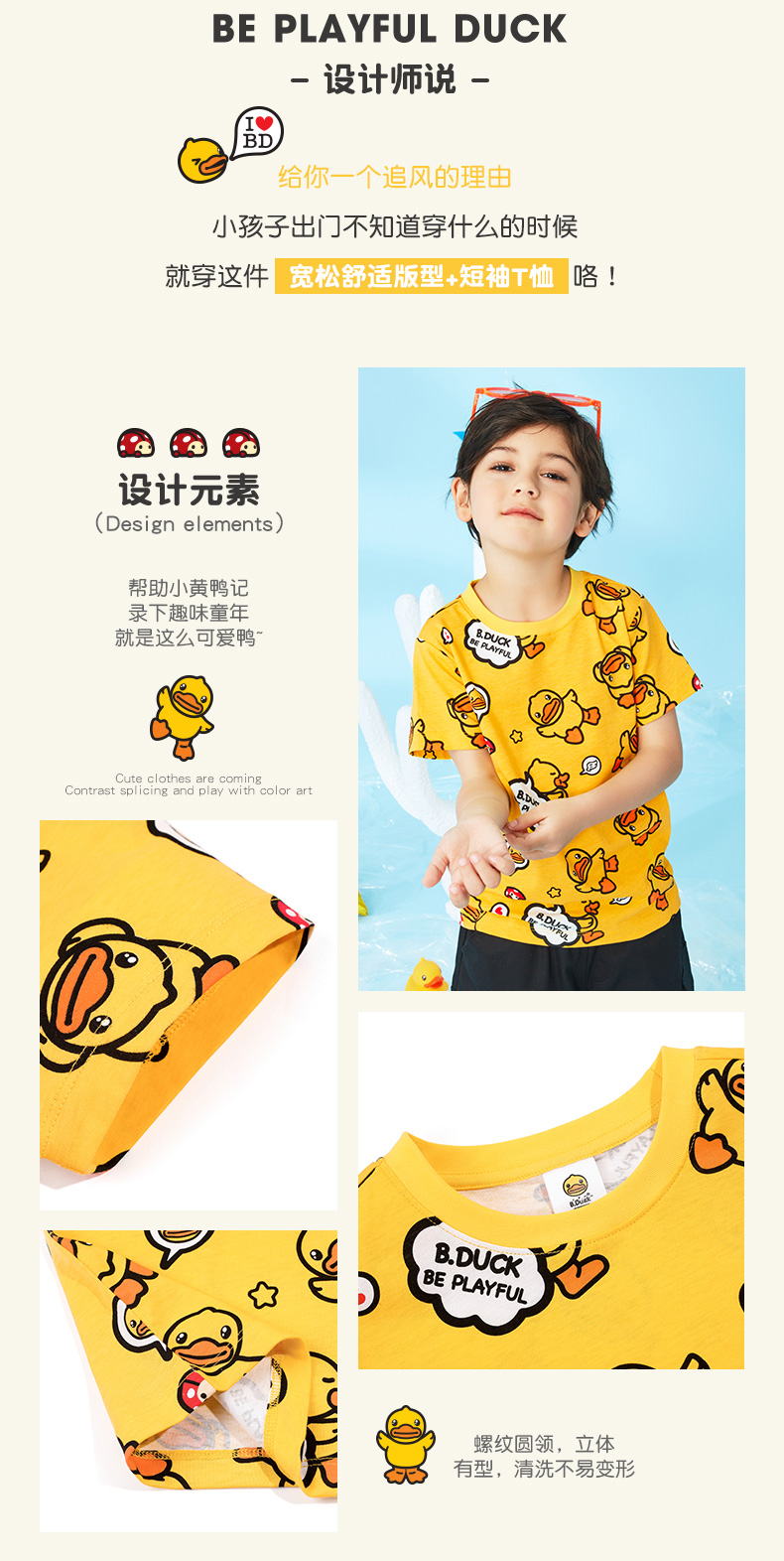 B.Duck小黄鸭童装夏季短袖T恤105-160 BF2201921B