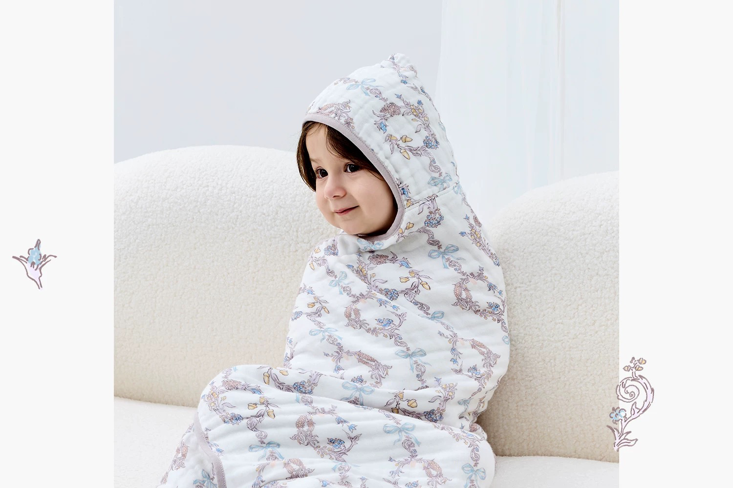 Domiamia 婴幼儿六层纱布带帽浴巾 新生儿包单