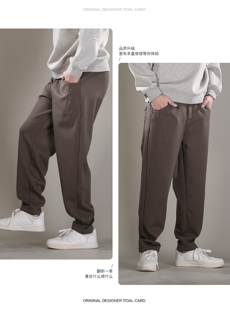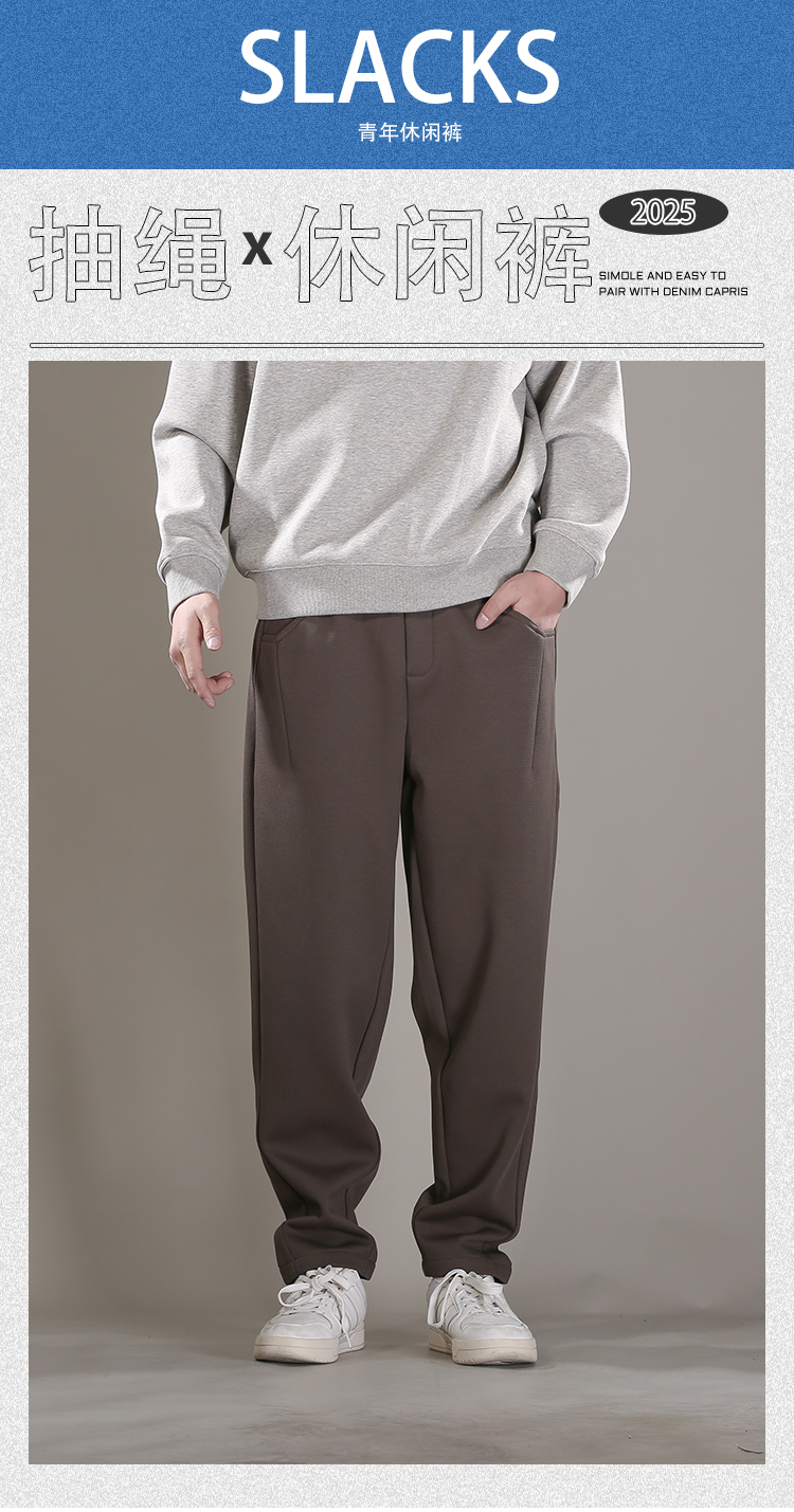 DRONKOO 2025 抽绳口袋结构斜纹暗格针织复合绒厚休闲长裤