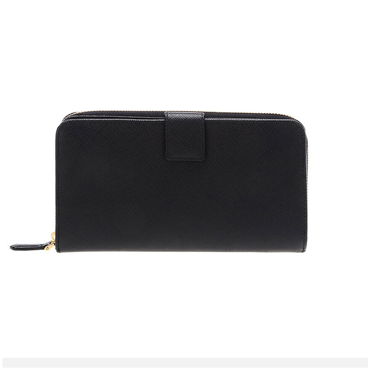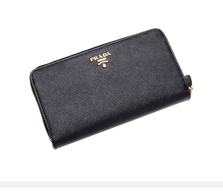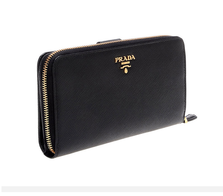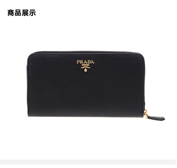 PRADA 普拉达 女士大号 Saffiano 皮革金属刻字徽标票夹钱包 黑色 1ML348 QWA F0002