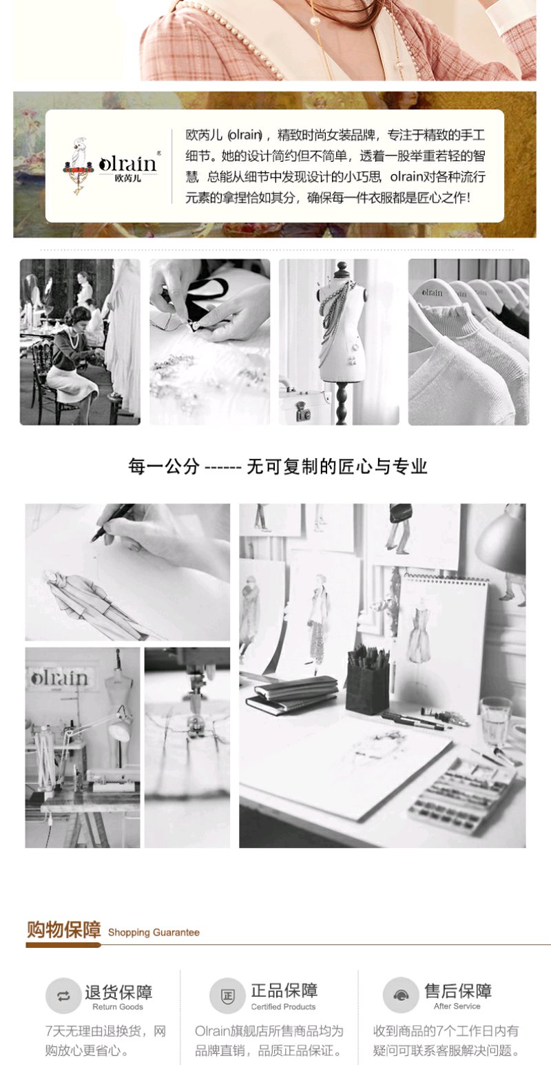 “精致”是欧芮儿olrain品牌文化的核心,欧芮儿认为,精致的女人,不但要外在动人,更要内在迷人,内外兼修,有魅力、有气质、有内涵,自信而不自傲,优雅而不矫揉,自有万种风情而不轻浮,更不故作矜持。