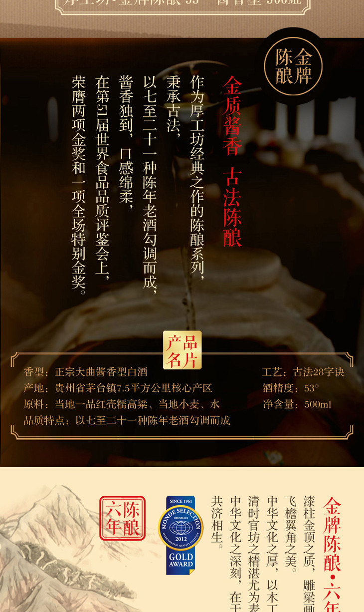 厚工坊八年陈酿坤沙酱香白酒53度500ml/1瓶/2瓶/6瓶整箱