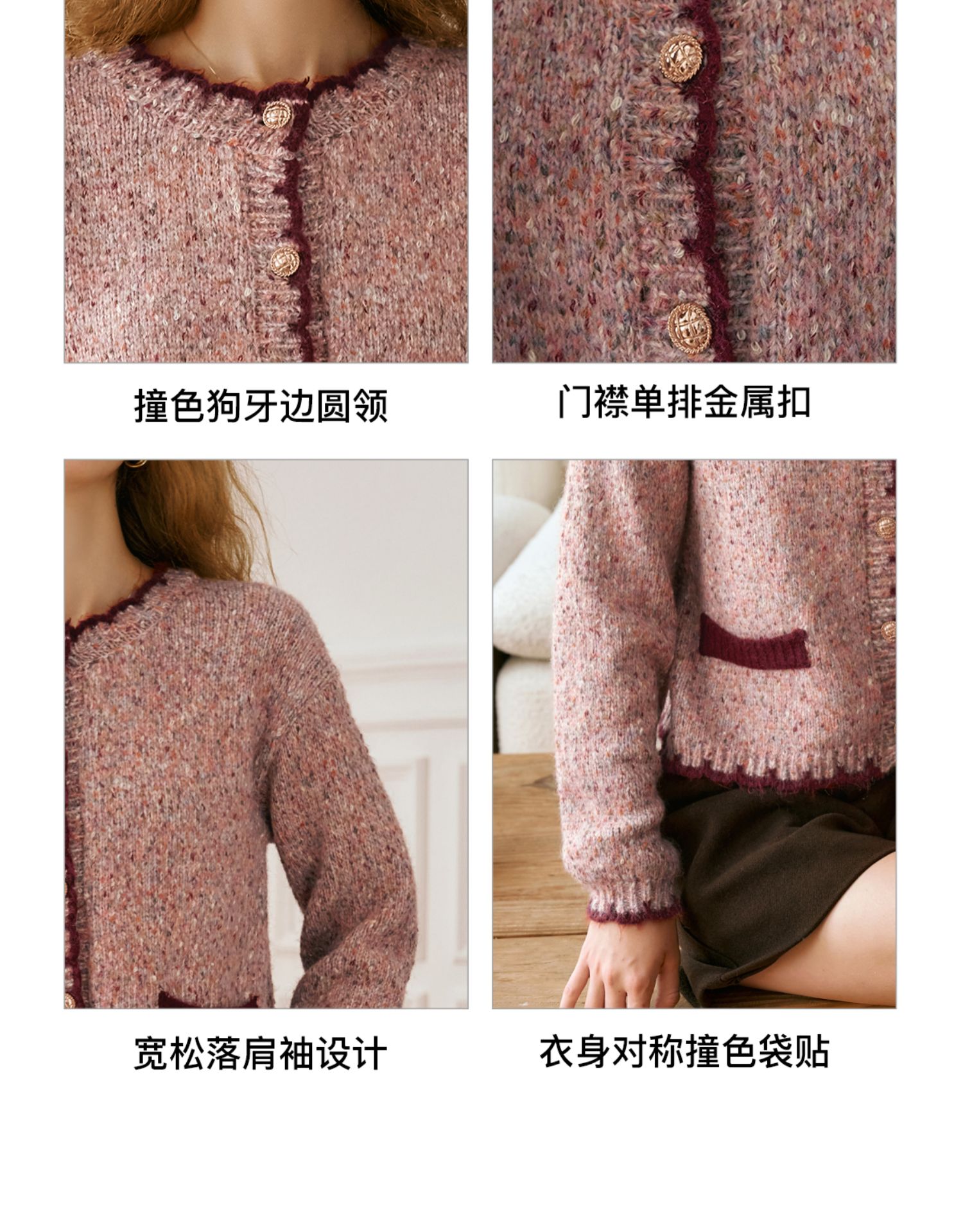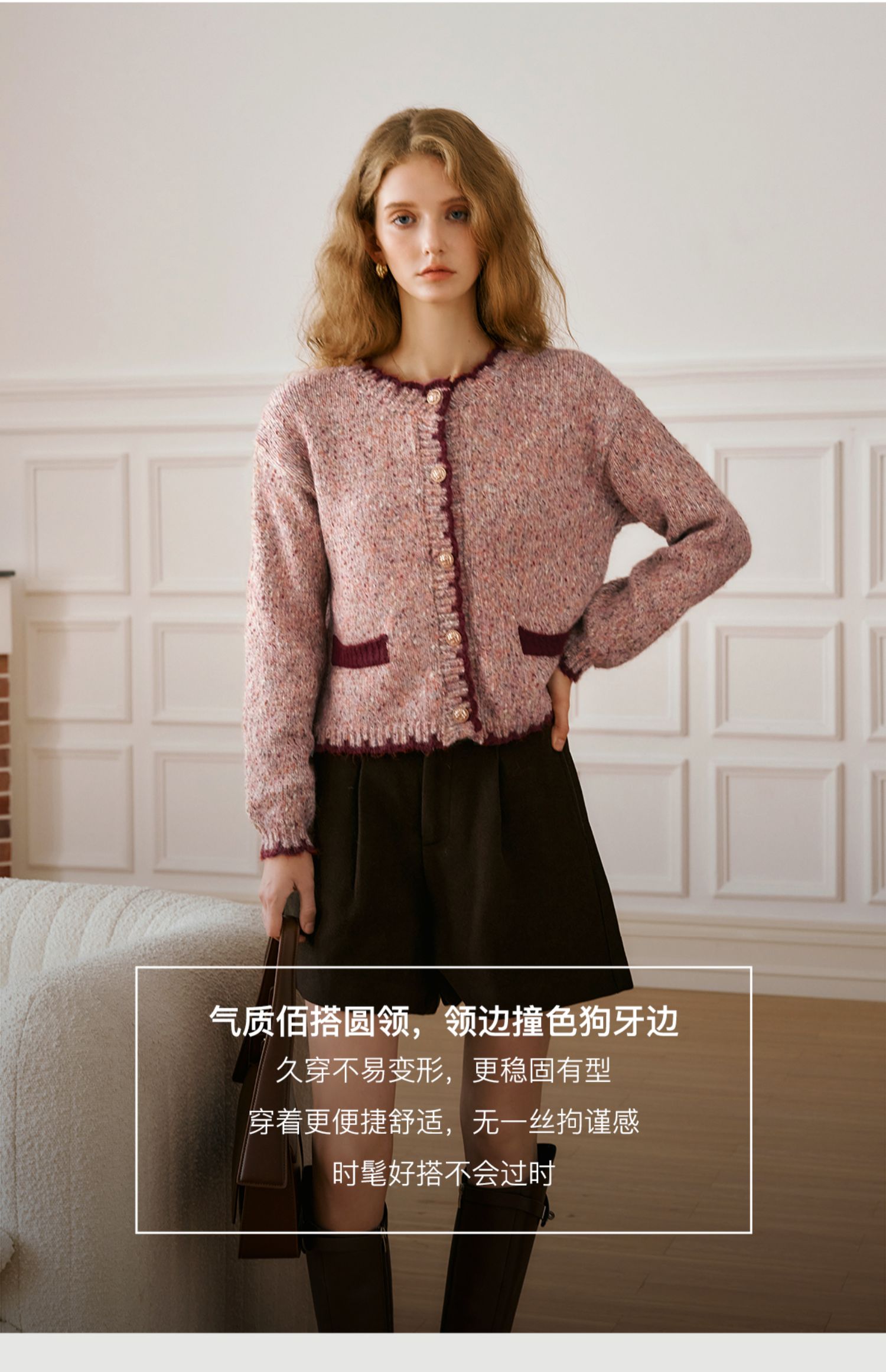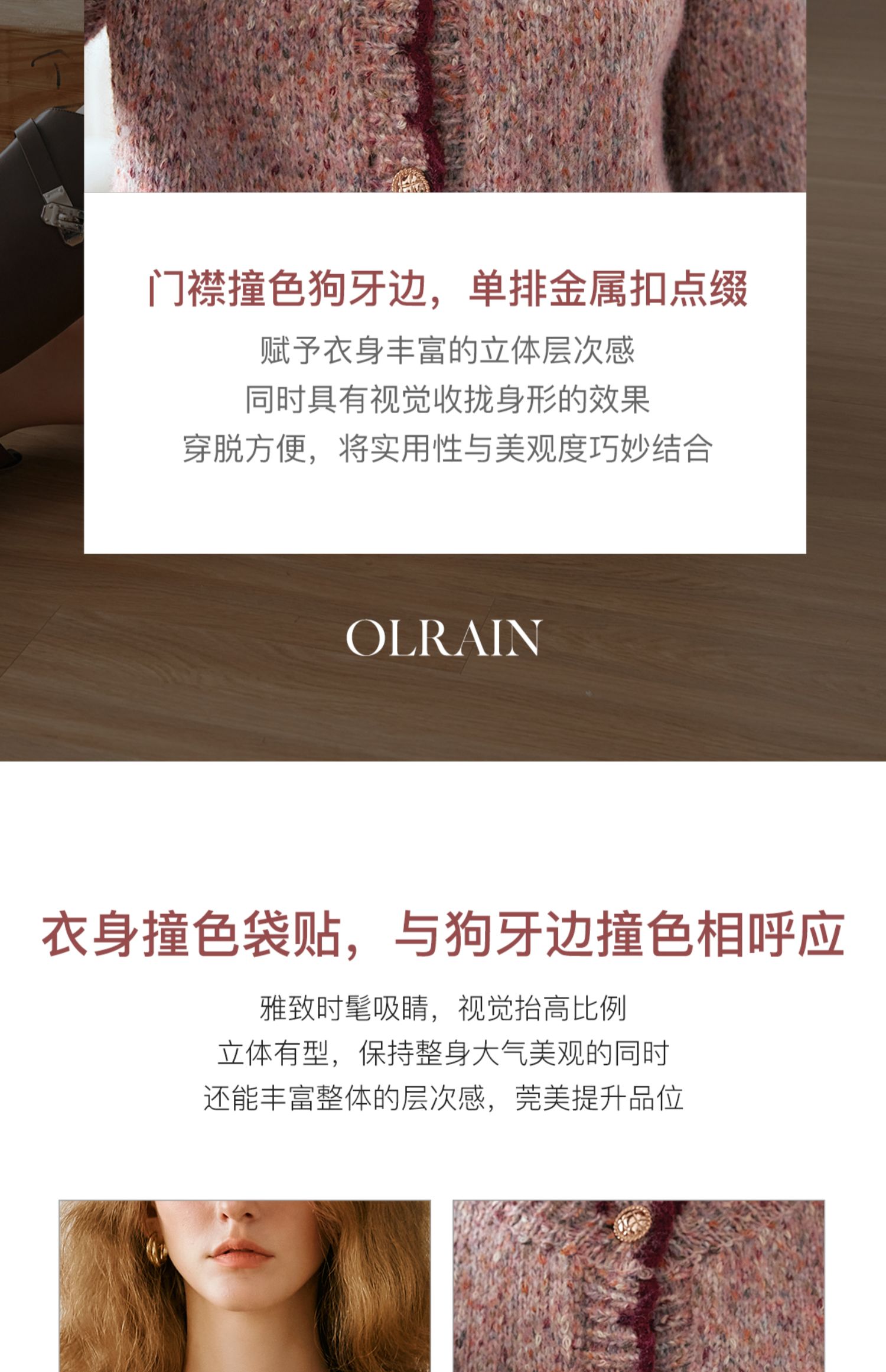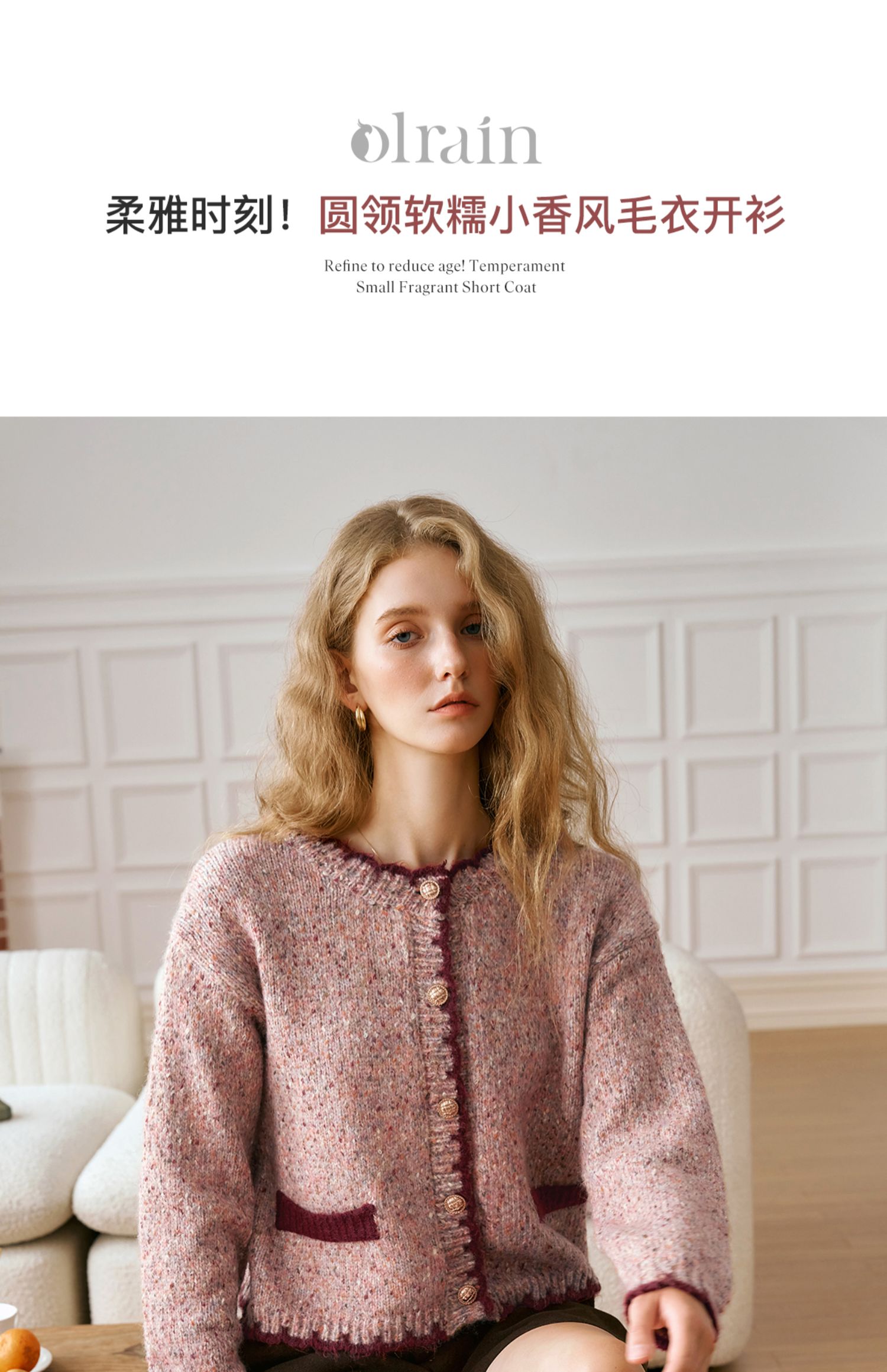OLrain欧芮儿法式小香风毛衣女秋季2024新款圆领软糯宽松针织开衫