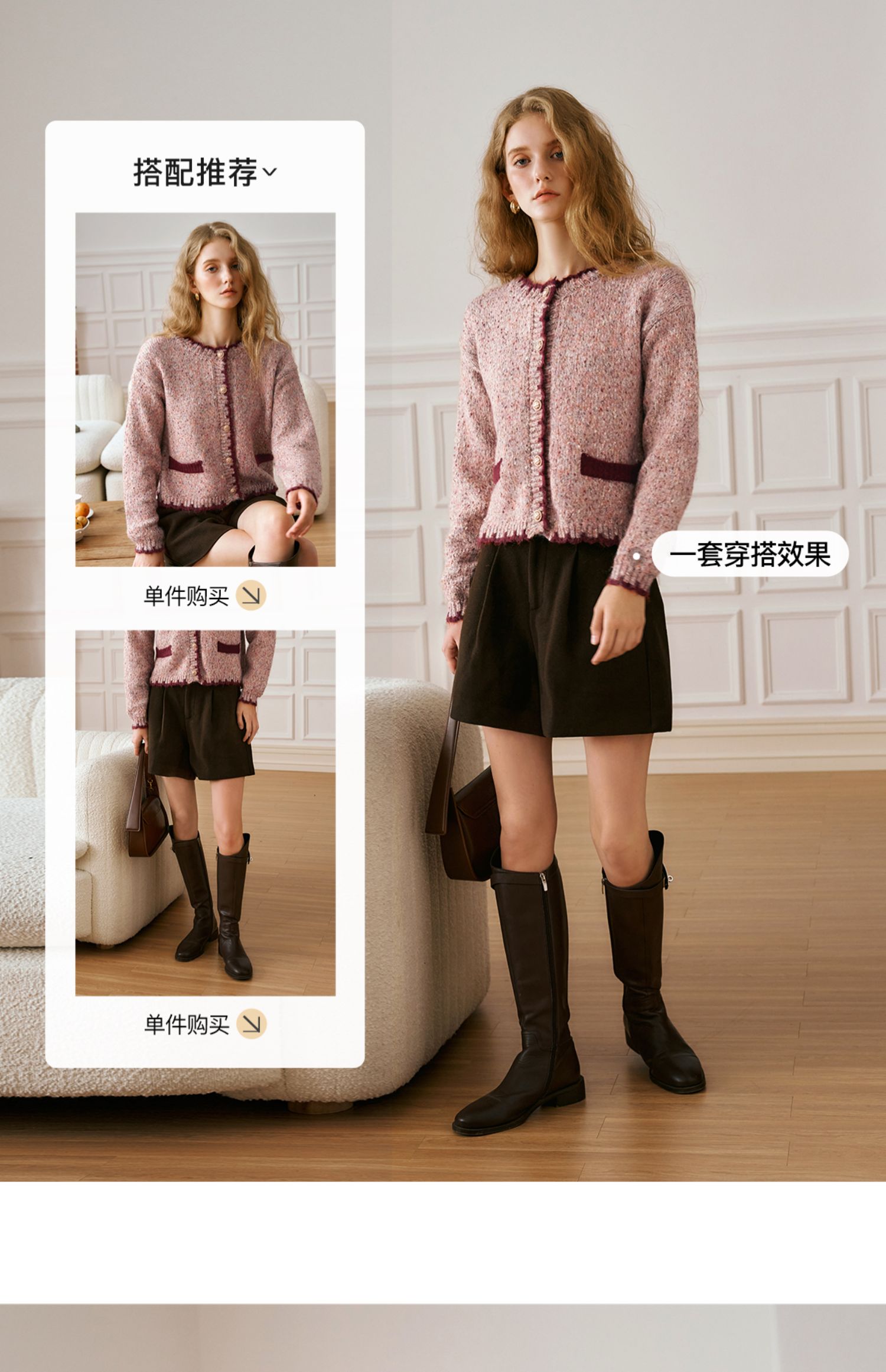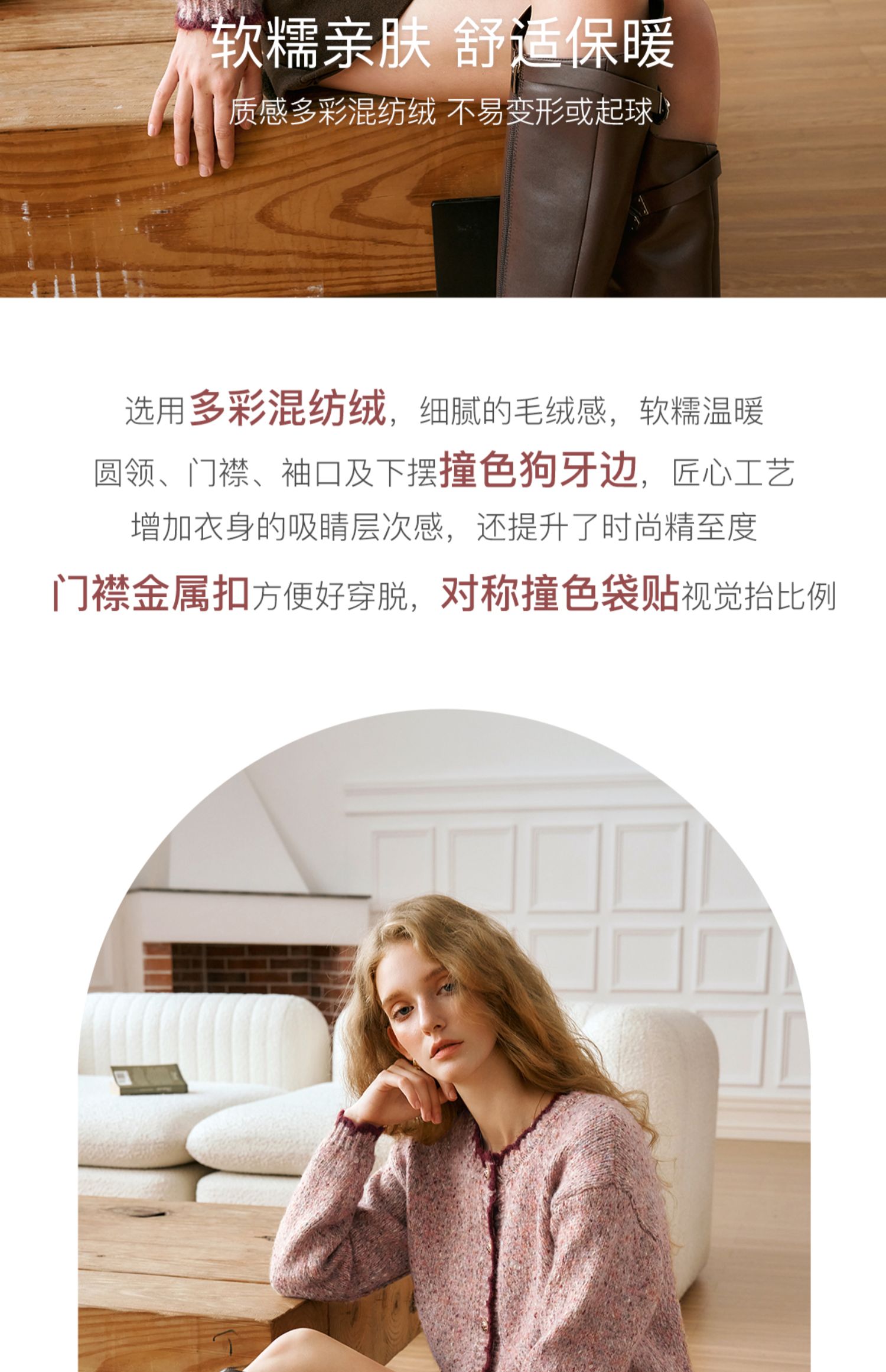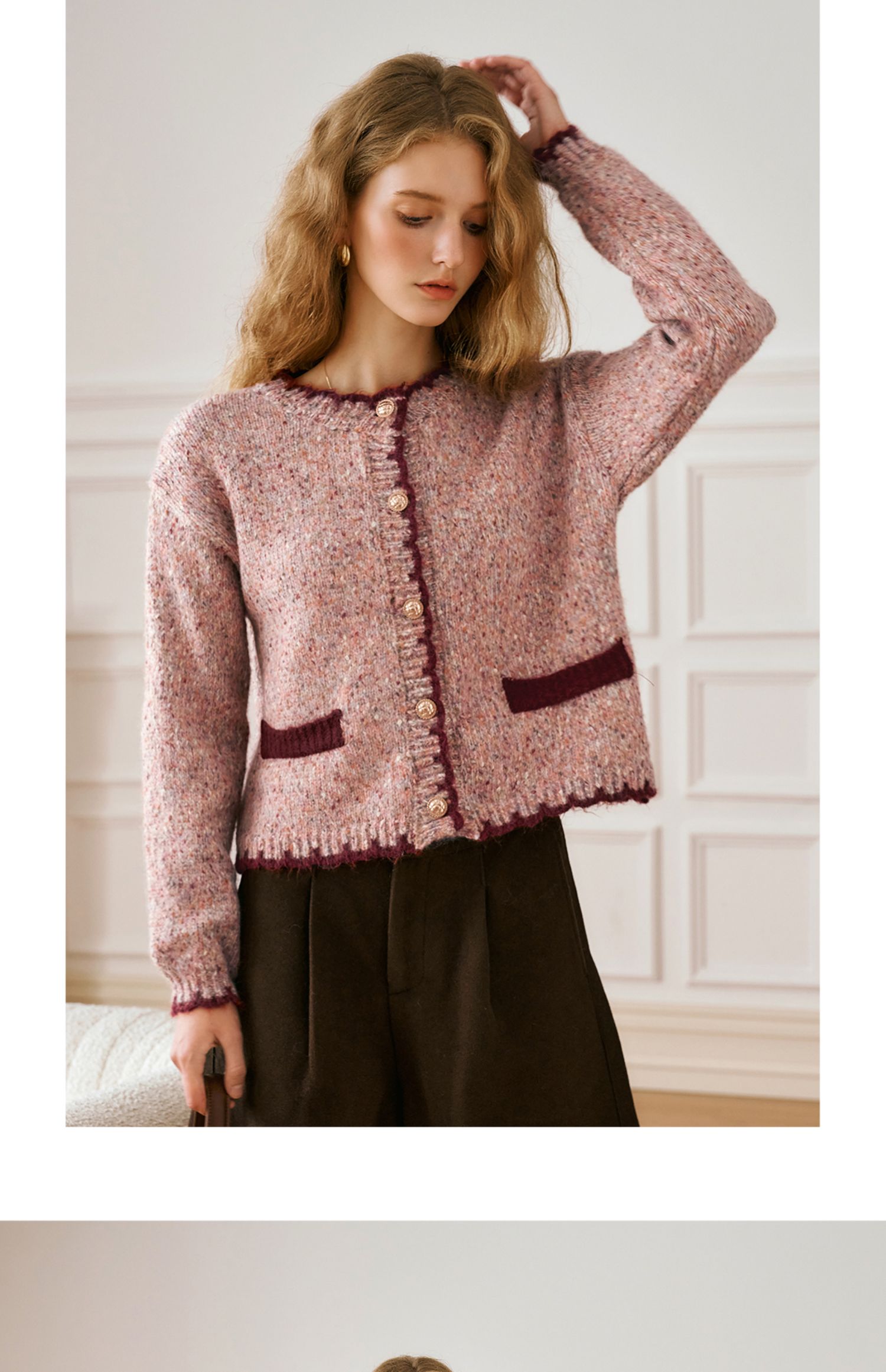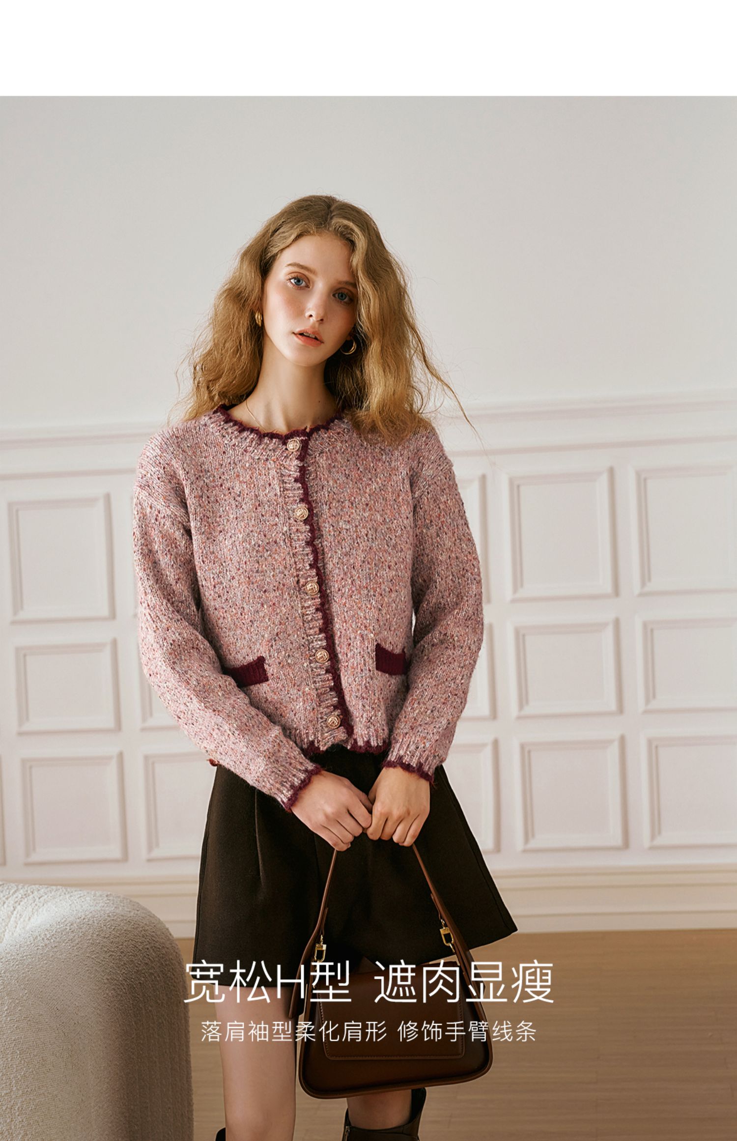 OLrain欧芮儿法式小香风毛衣女秋季2024新款圆领软糯宽松针织开衫