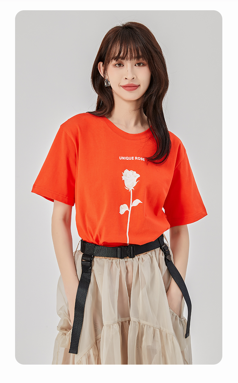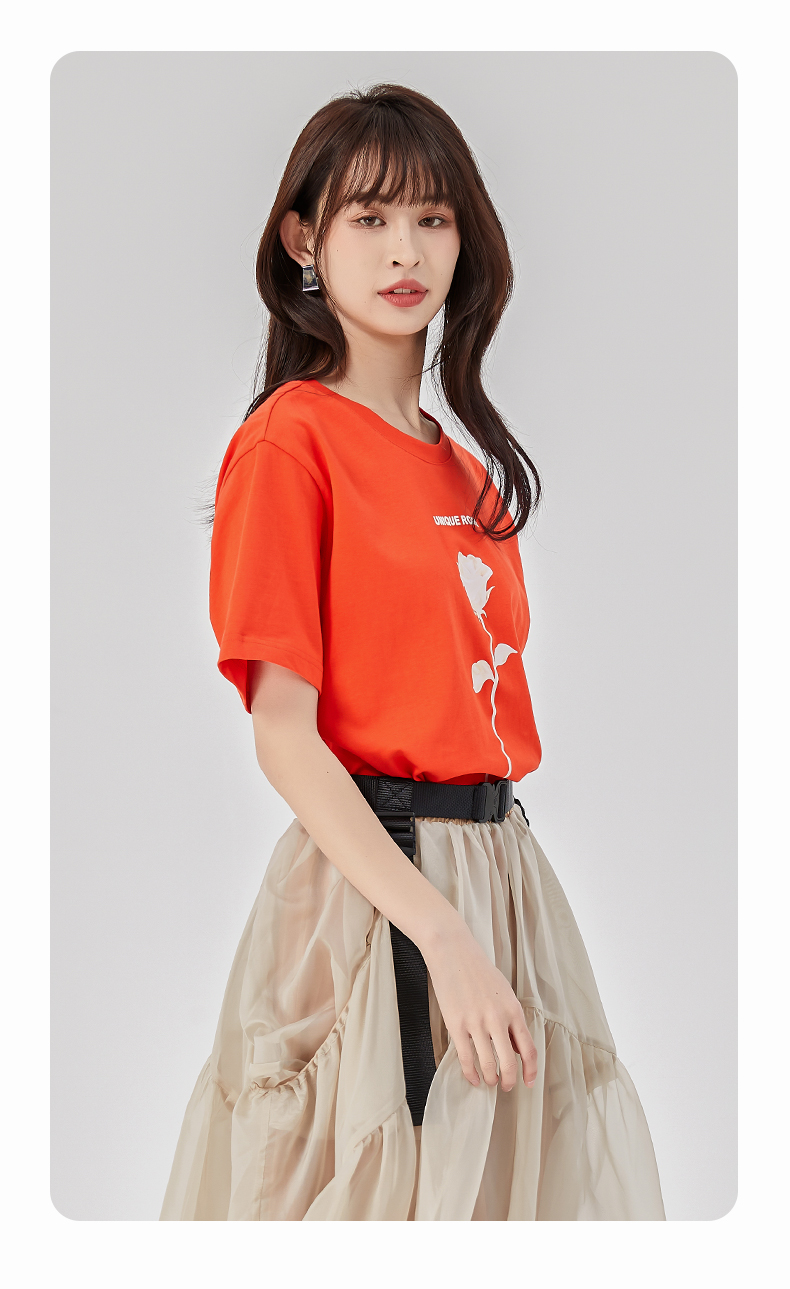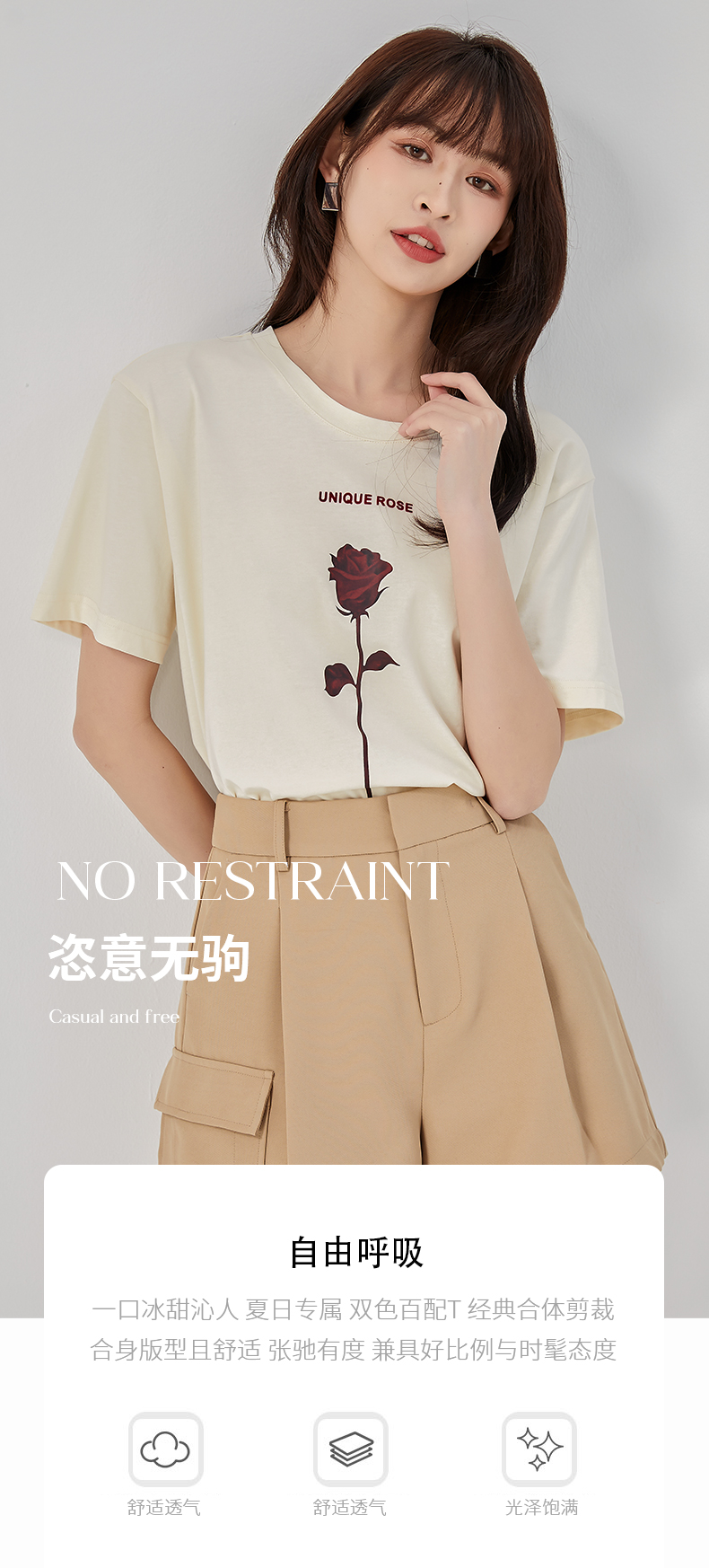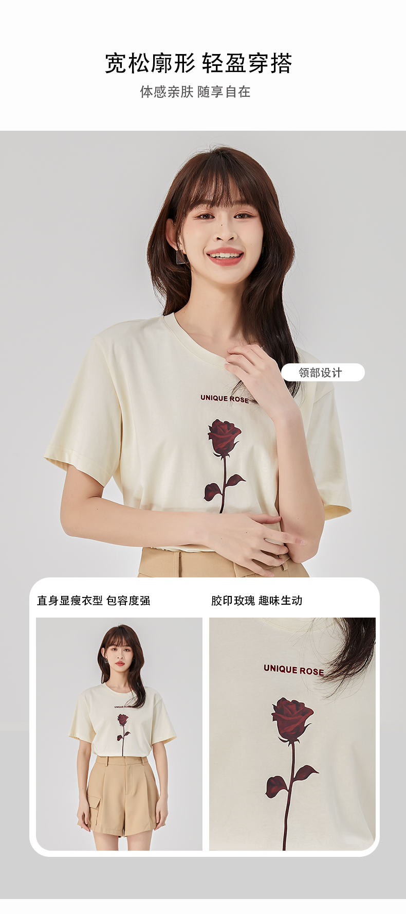 oldcolour2023夏新款纯棉时尚气质基础款印花宽松T恤女O23021336
