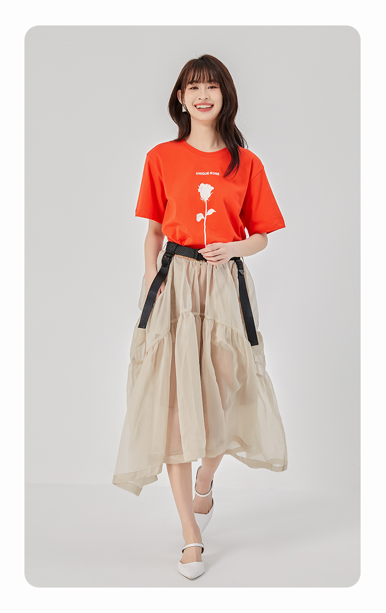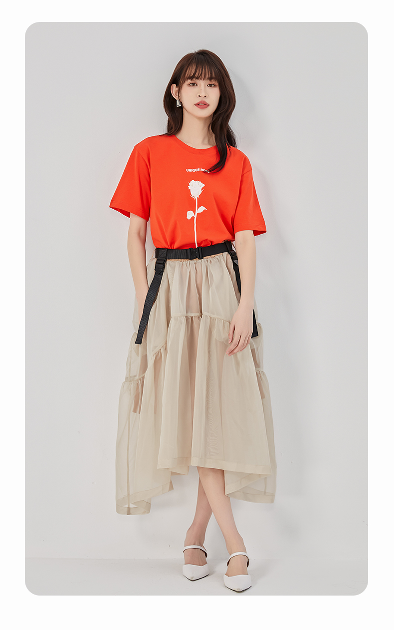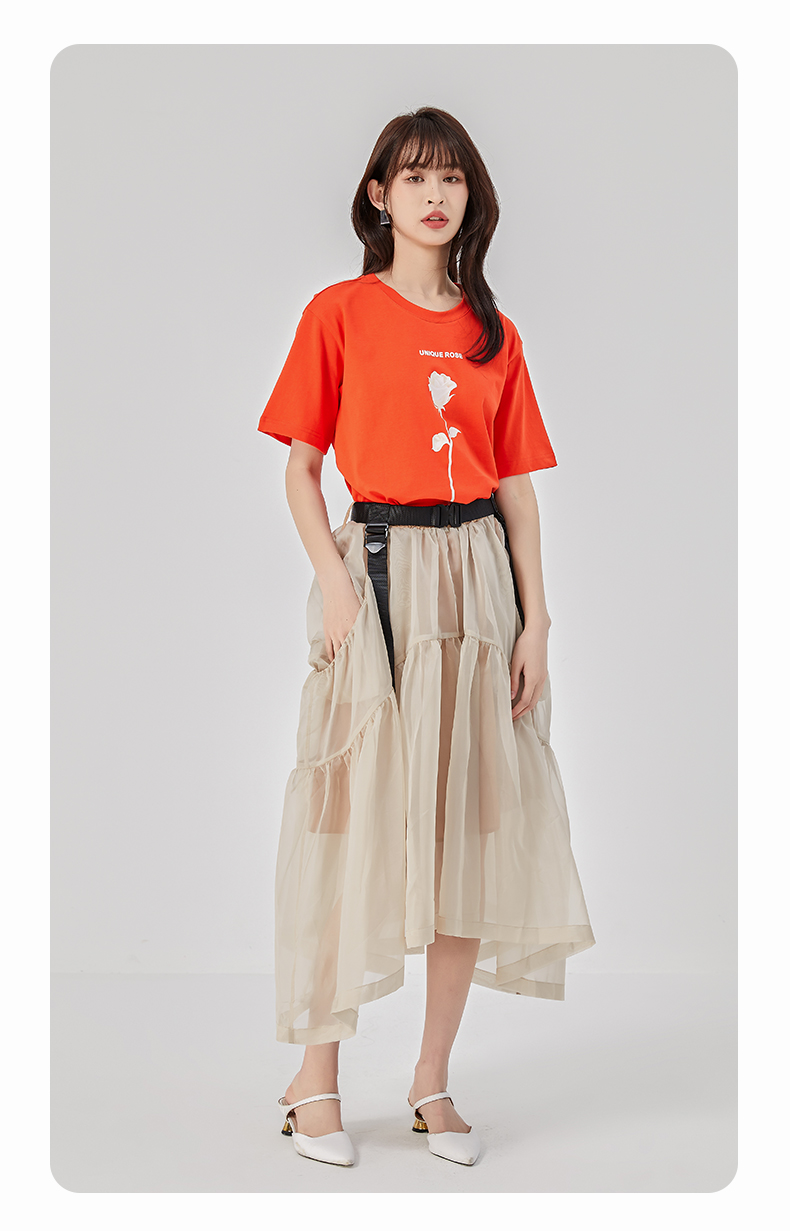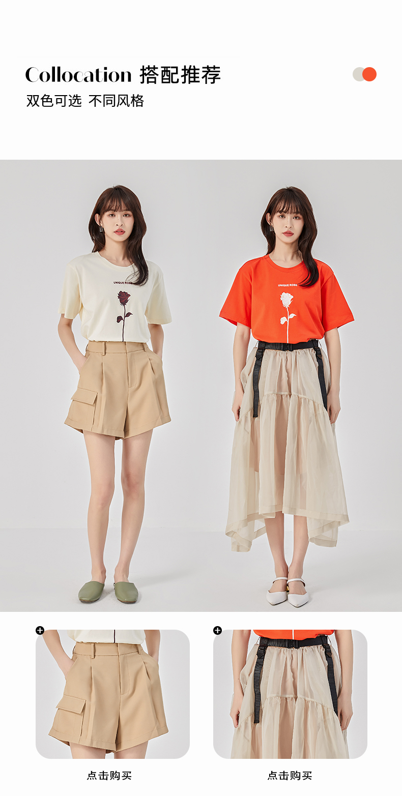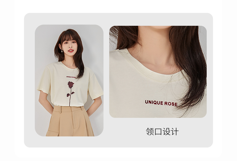oldcolour2023夏新款纯棉时尚气质基础款印花宽松T恤女O23021336