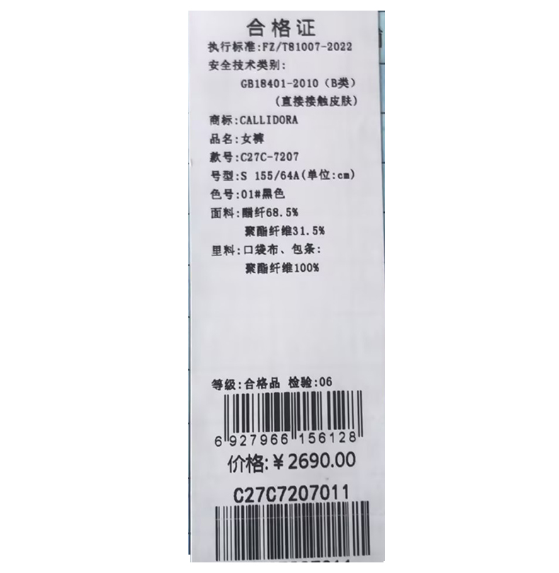 卡莉朵拉长裤C27C7207