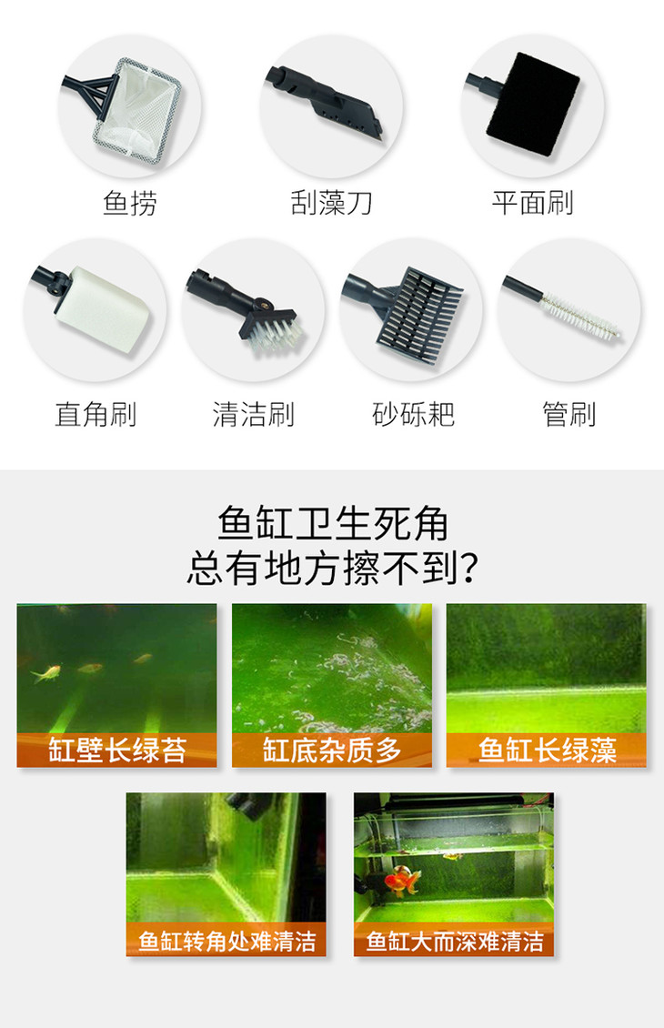 百因美鱼缸刷子可伸缩长柄清理工具除藻洗沙神器清洁刷刮藻刀7合1