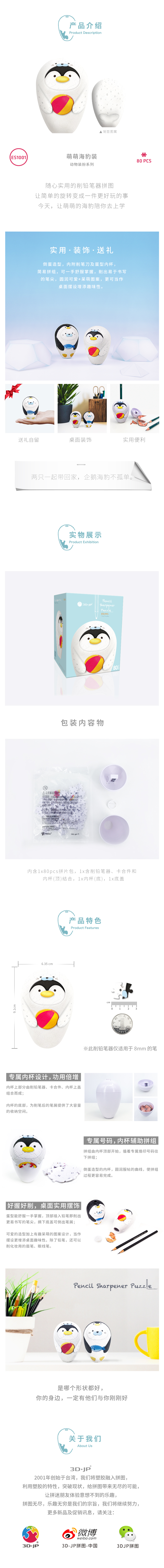【折扣商品 不退不换】80片 削铅笔器塑料拼图ES1001 动物装扮系列-萌萌海豹装