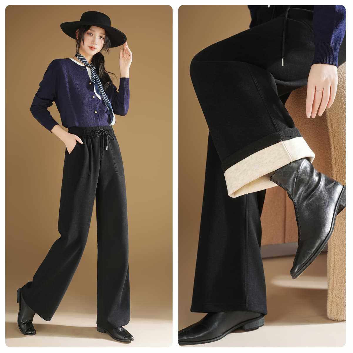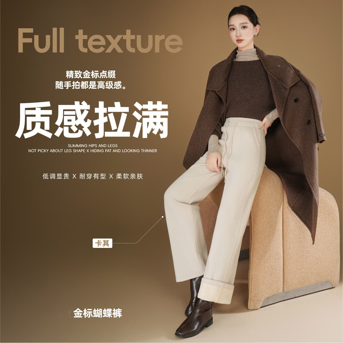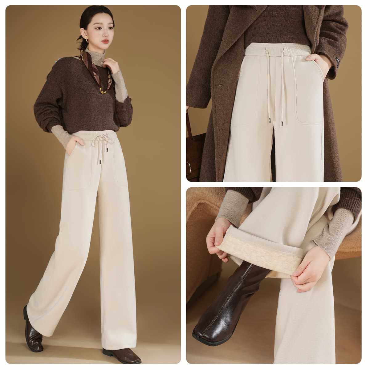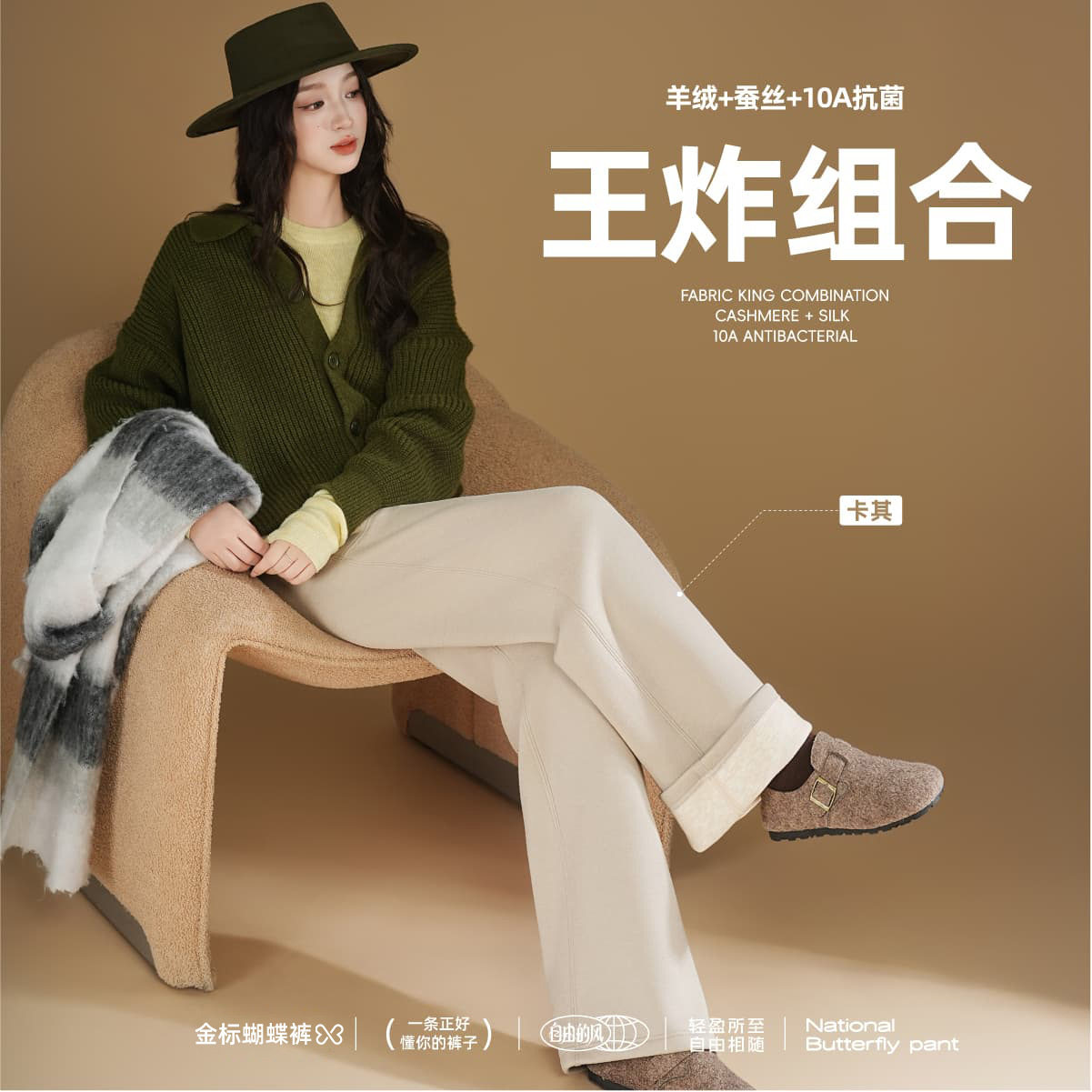 现货莱赛尔秋冬加绒厚款直筒女士休闲裤遮肉显瘦百搭羊绒蚕丝裤 【特价】【山羊绒+桑蚕丝+天丝,王炸面料配比】【蝴蝶裤型,显瘦天花板】