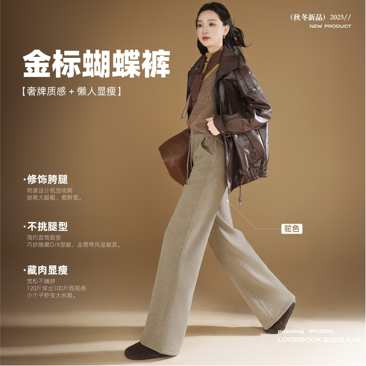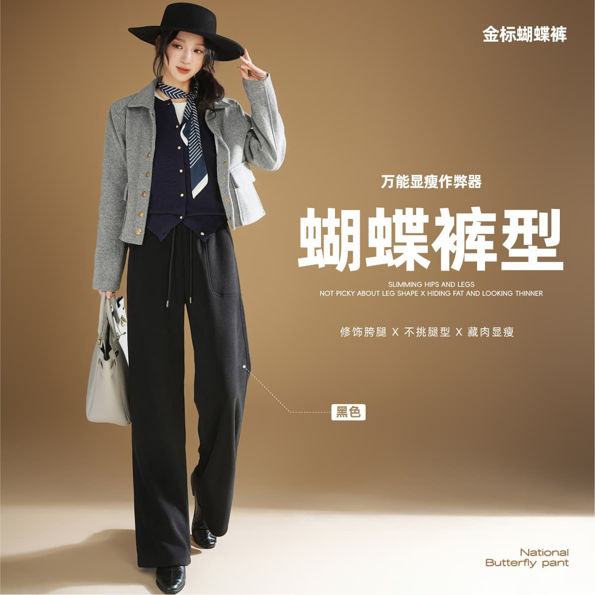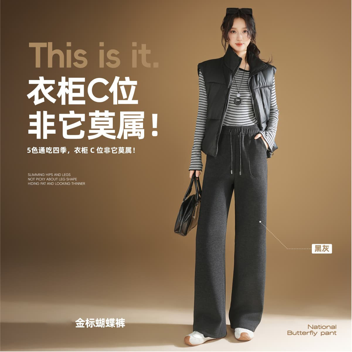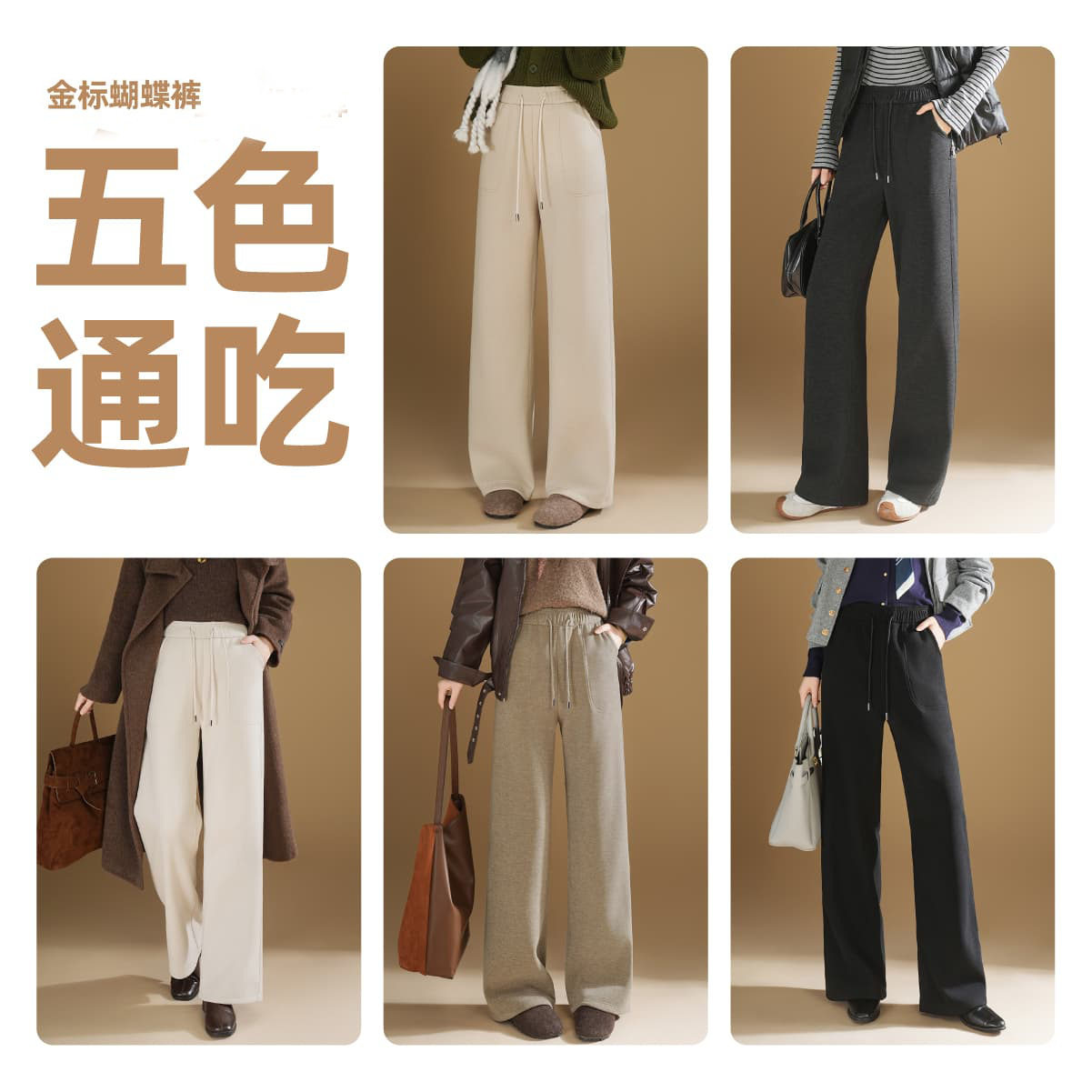 现货莱赛尔秋冬加绒厚款直筒女士休闲裤遮肉显瘦百搭羊绒蚕丝裤 【特价】【山羊绒+桑蚕丝+天丝,王炸面料配比】【蝴蝶裤型,显瘦天花板】