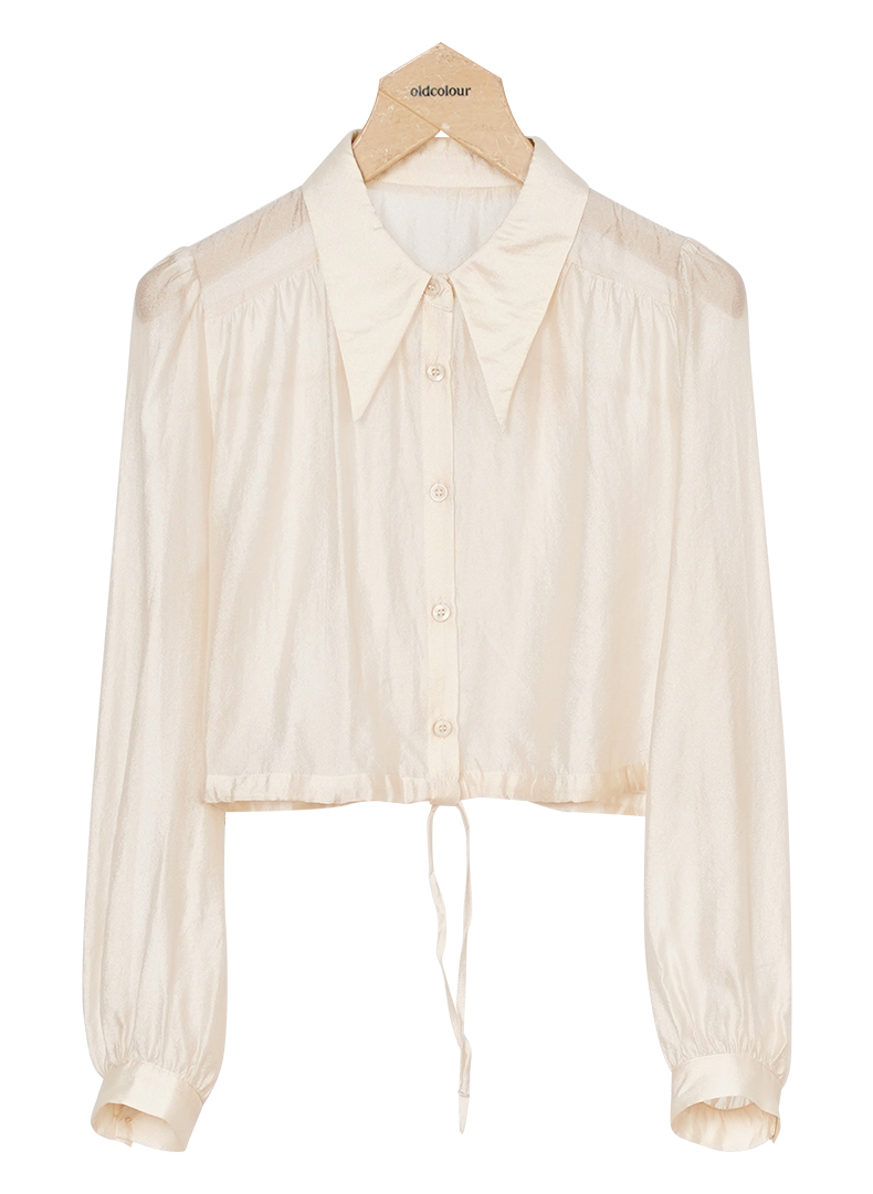 oldcolour纯色短款衬衫春季新款设计感百搭长袖上衣女P12013292