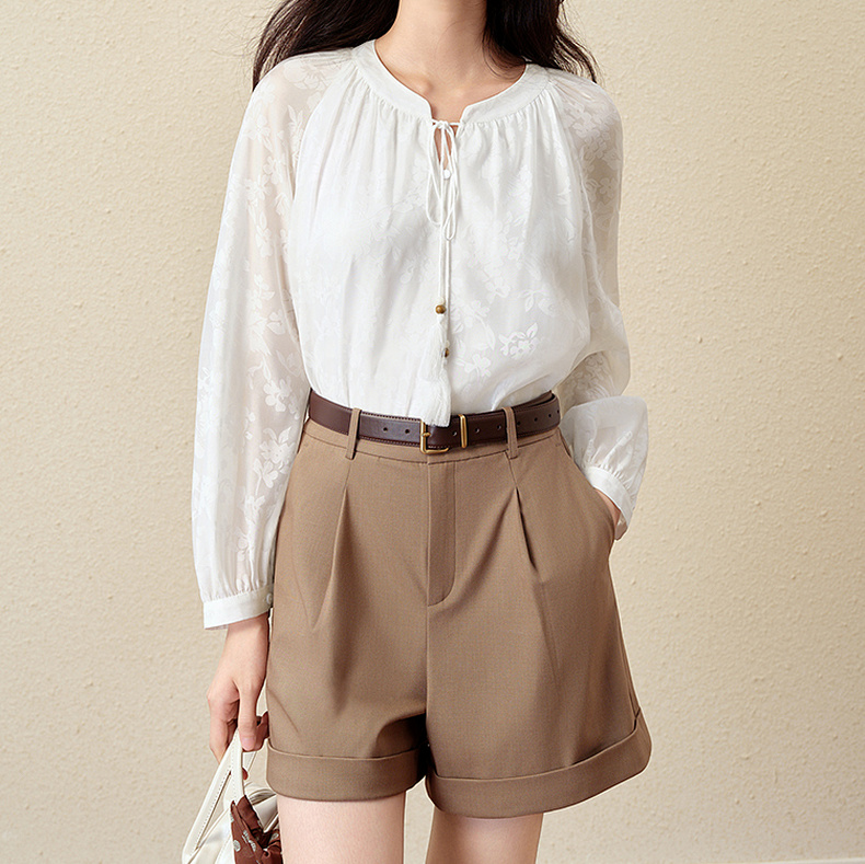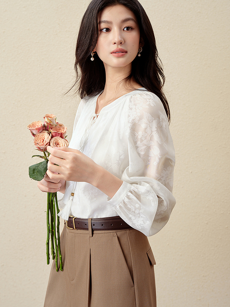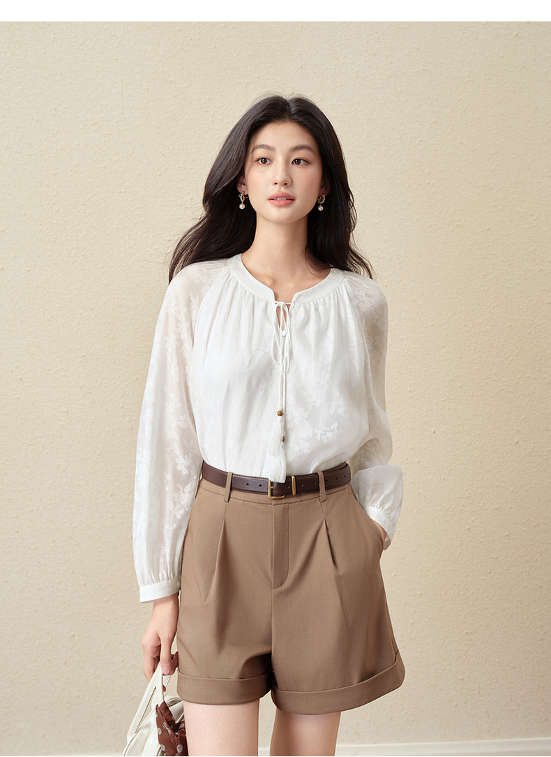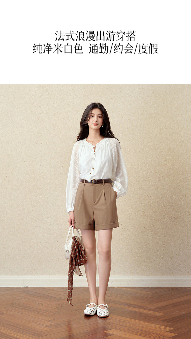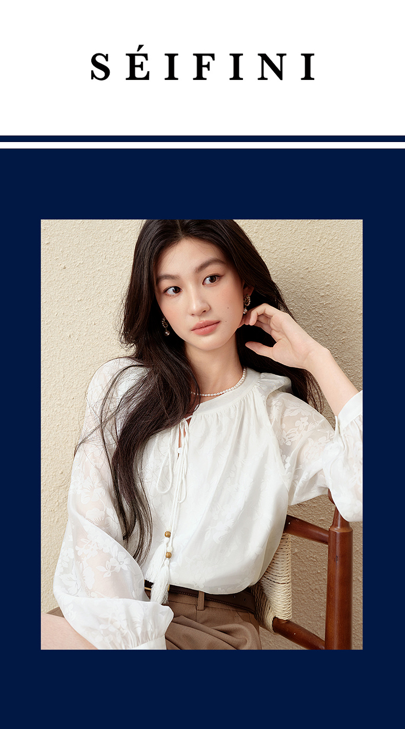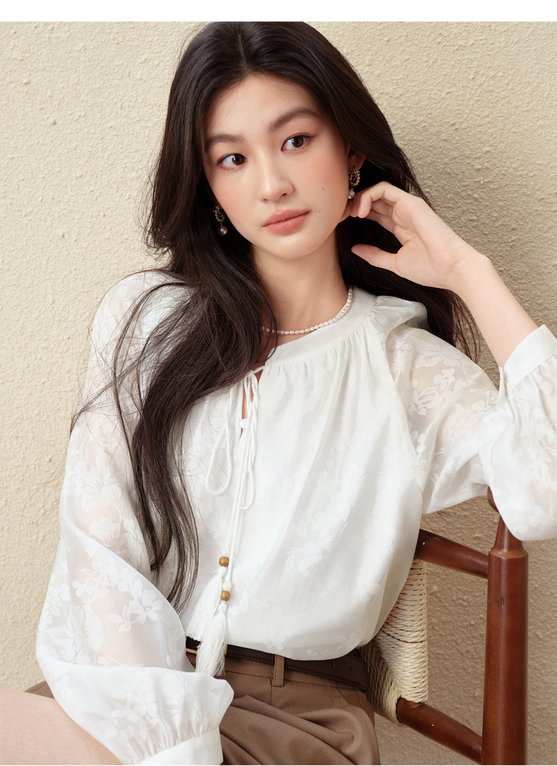 【严选】诗凡黎波西米亚风剪花流苏绳衬衫2025秋新款宽松法式气质小上衣女7G7320671