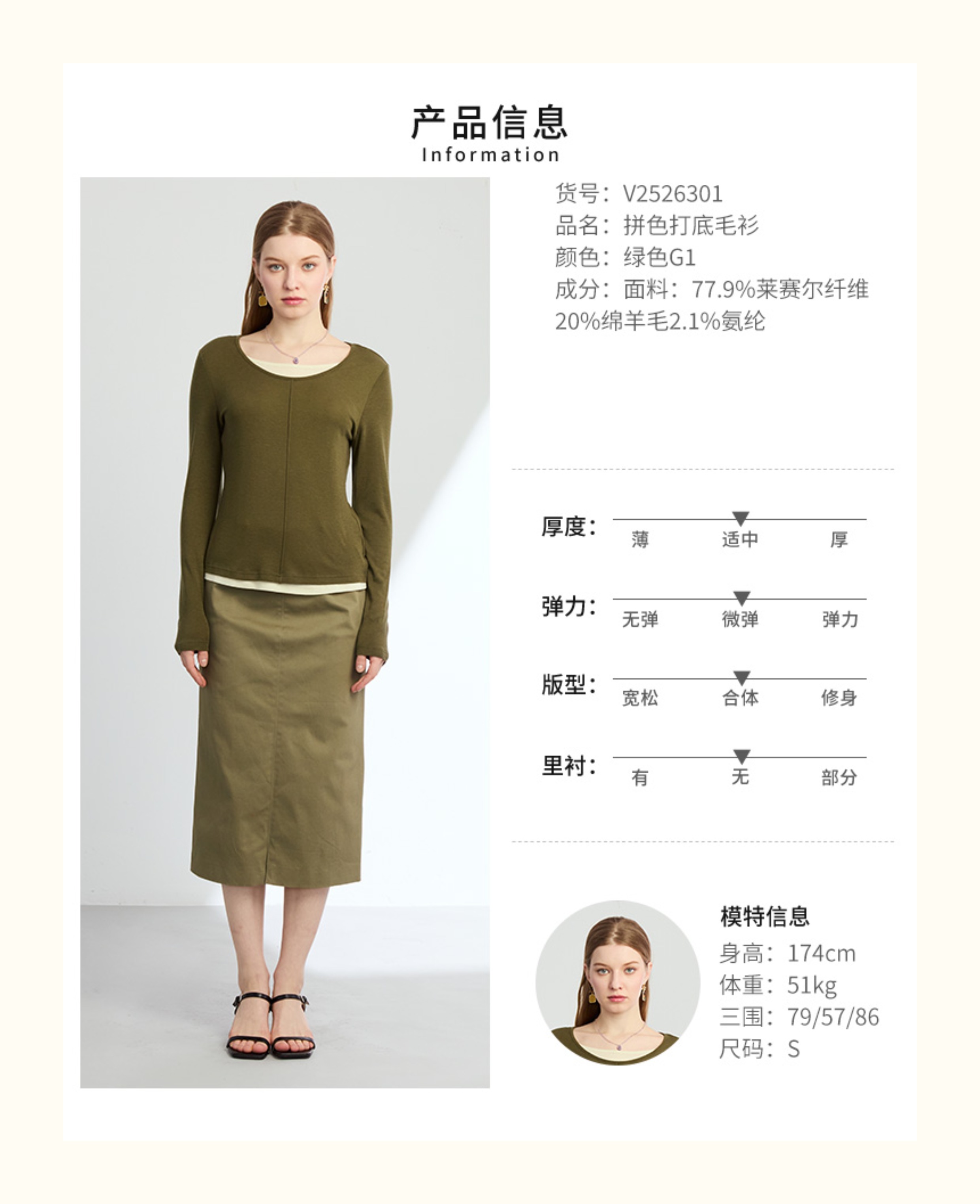 VIVIAN LIU薇薇安刘V2526301春女装新款时尚圆领拼色打底毛衫