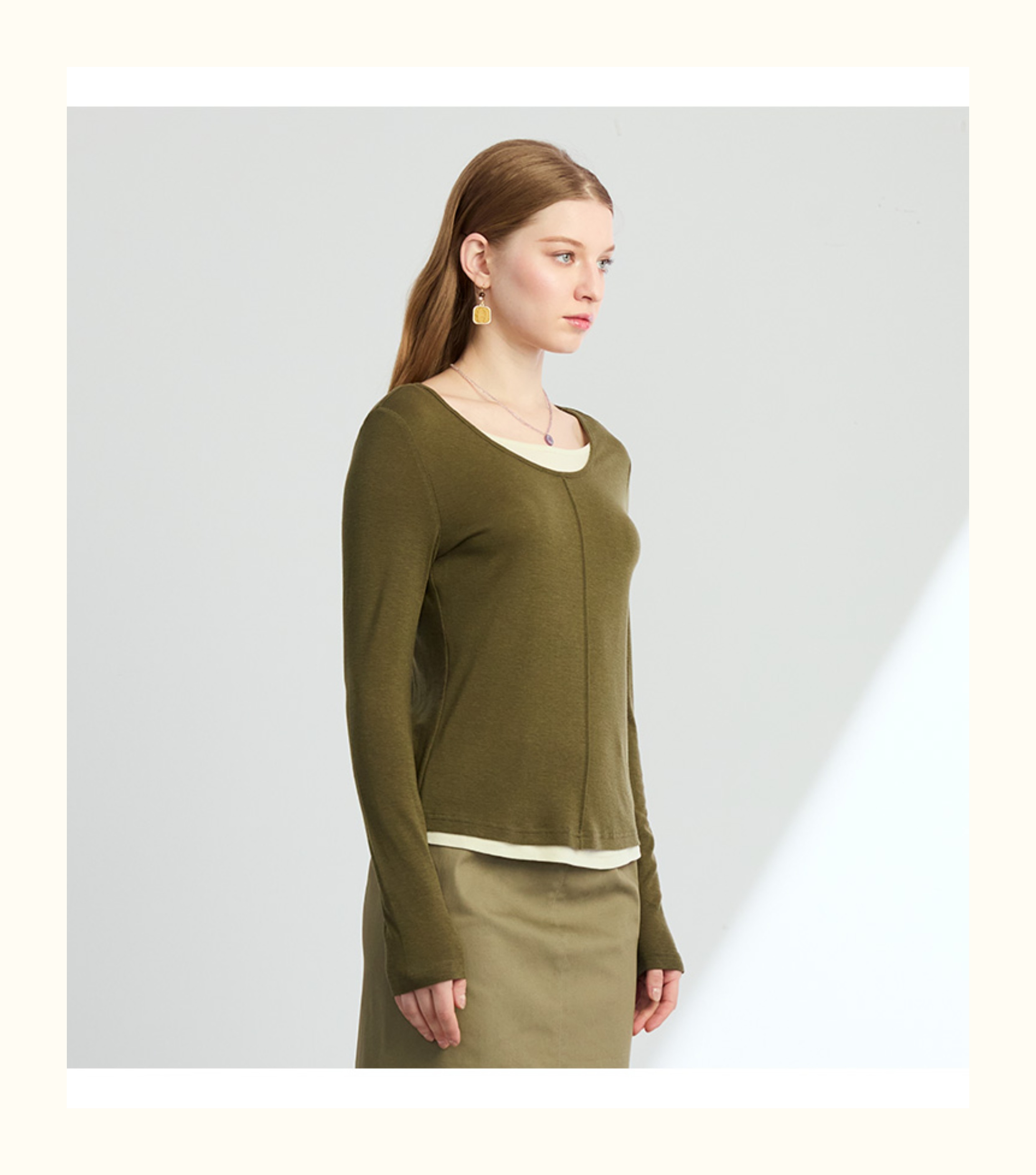 VIVIAN LIU薇薇安刘R2347316秋女装新款七分袖木耳边袖口打底衫