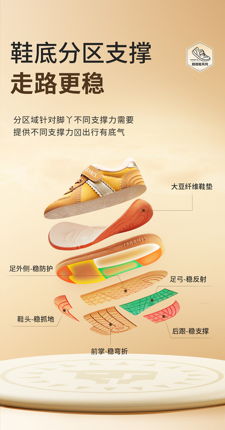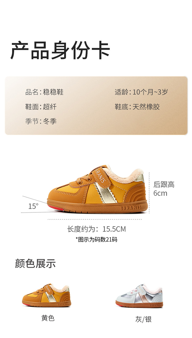 泰兰尼斯稳稳鞋男宝宝春秋新款儿童鞋子机能鞋学步鞋防滑德训鞋女T26X3D4462