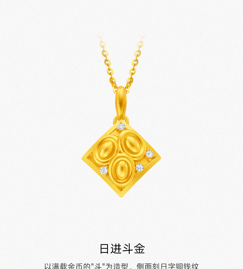 【预售】「中国印象」日进斗金足金钻石吊坠 古法点钻工艺黄金挂坠