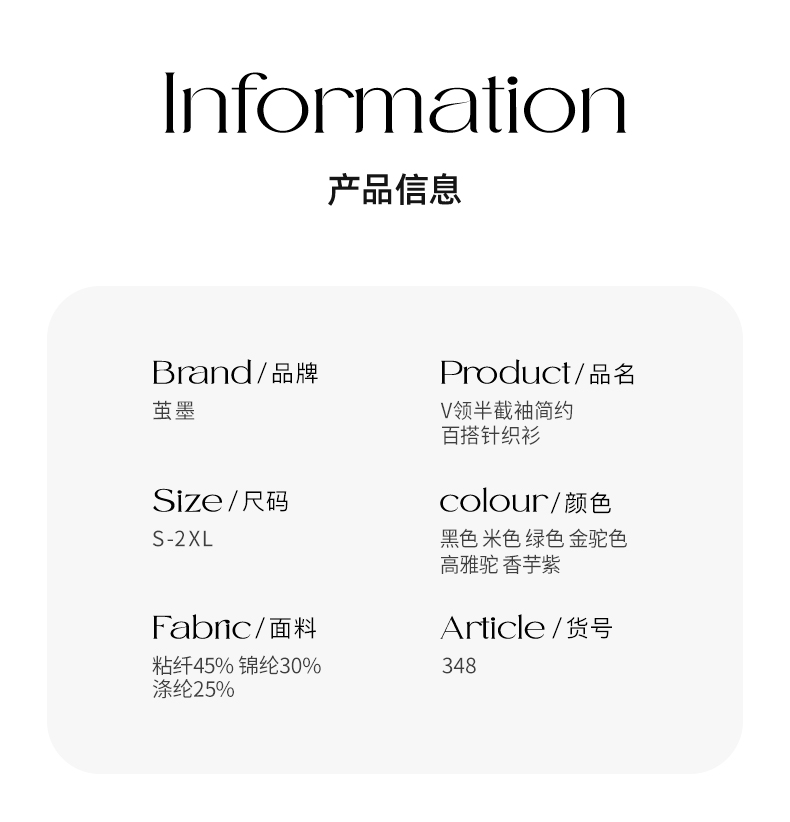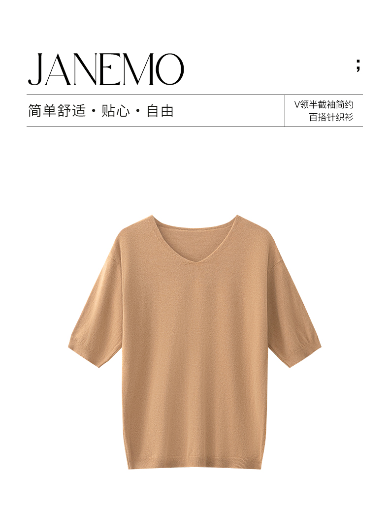 【买一送一】茧墨 V领半截袖简约百搭针织衫