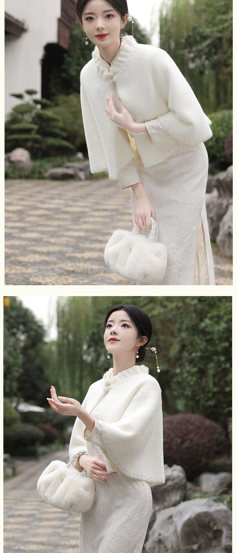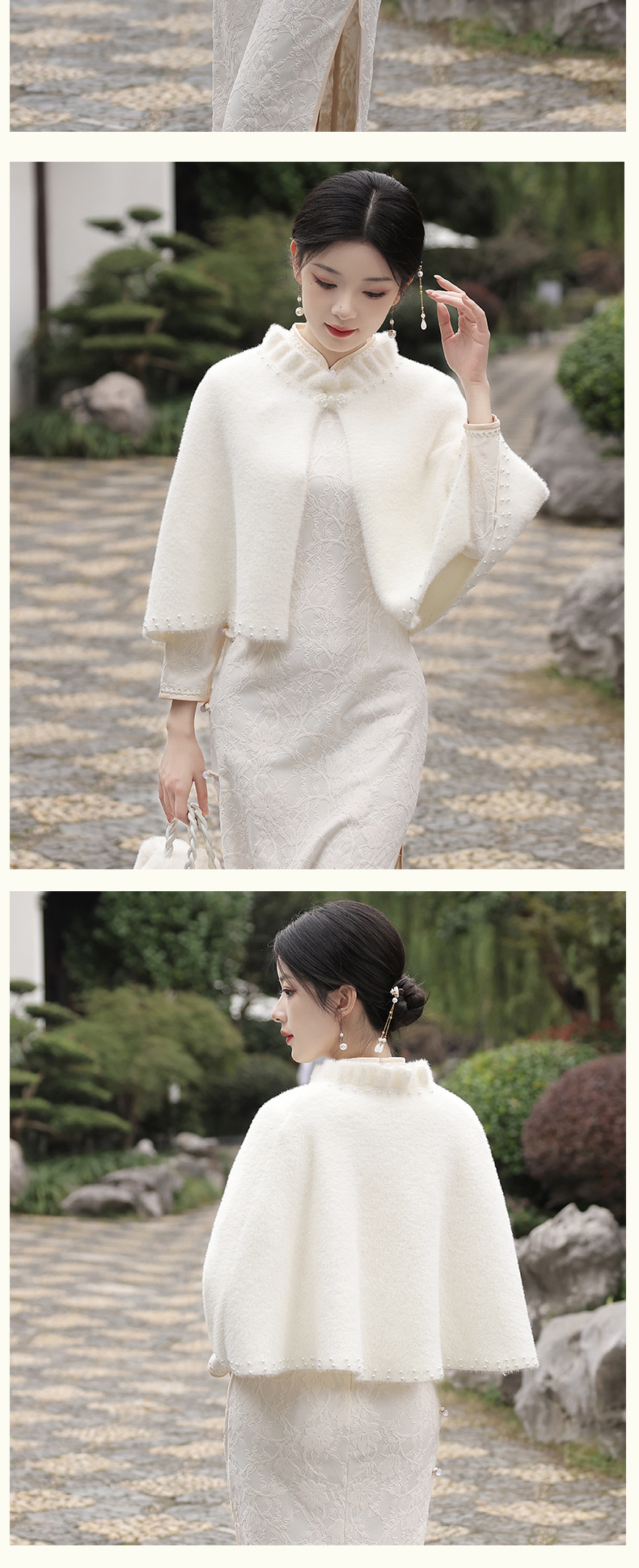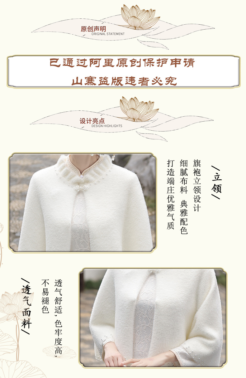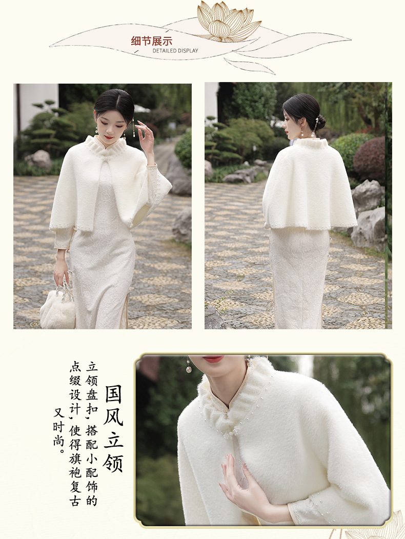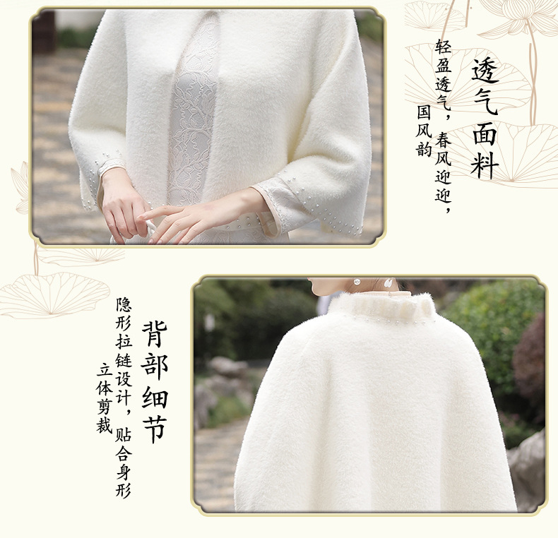 钉珠加厚斗篷复合蕾丝加绒气质百搭披肩SJT-20231123
