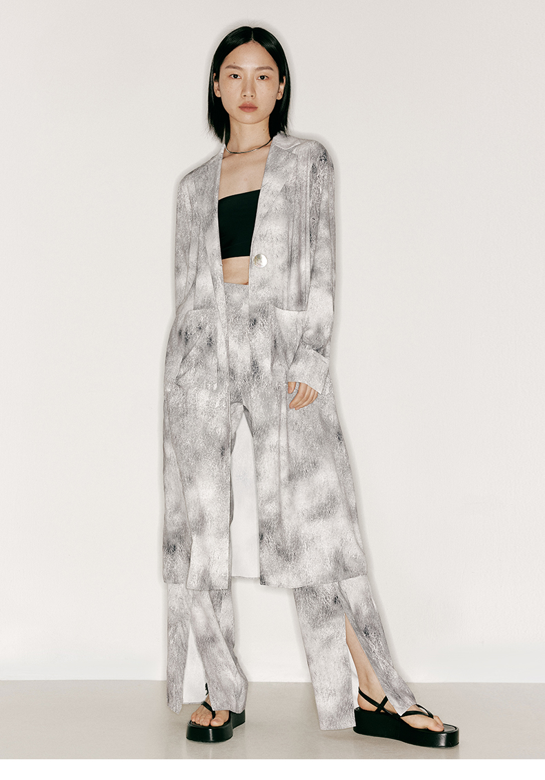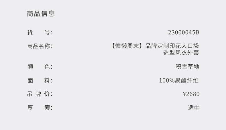 【慵懒周末】品牌定制印花大口袋造型风衣外套/23000045B