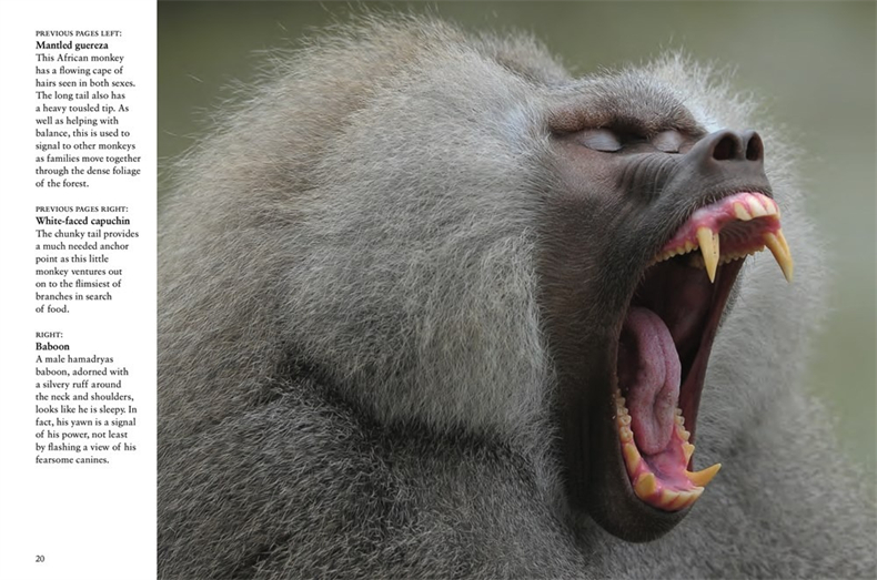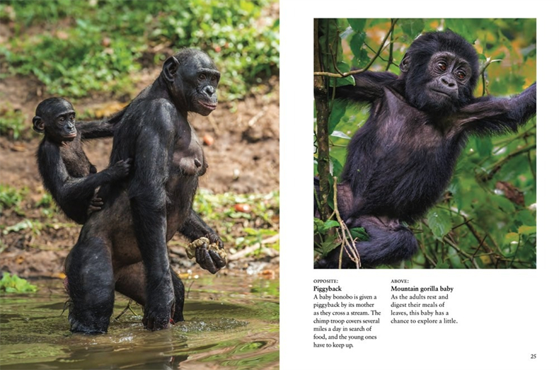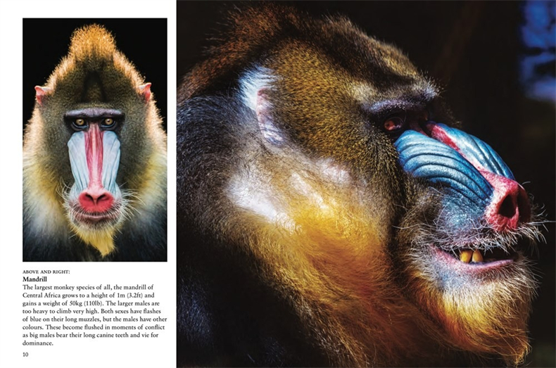 体型超小的猴子是侏儒狨猴,体长仅为117毫米(4.6英寸),尾长172毫米(6.8英寸),体重略高于100克(3.5盎司);而体型庞大的格劳尔大猩猩体重可超过180公斤(400磅)。本书配有详尽的图解,详细阐述了这些物种的群居行为、交流、捕猎、觅食和抚养幼崽的方式。本书通过230张精美的彩色照片,对这些非凡的灵长类动物进行了精彩的分析。