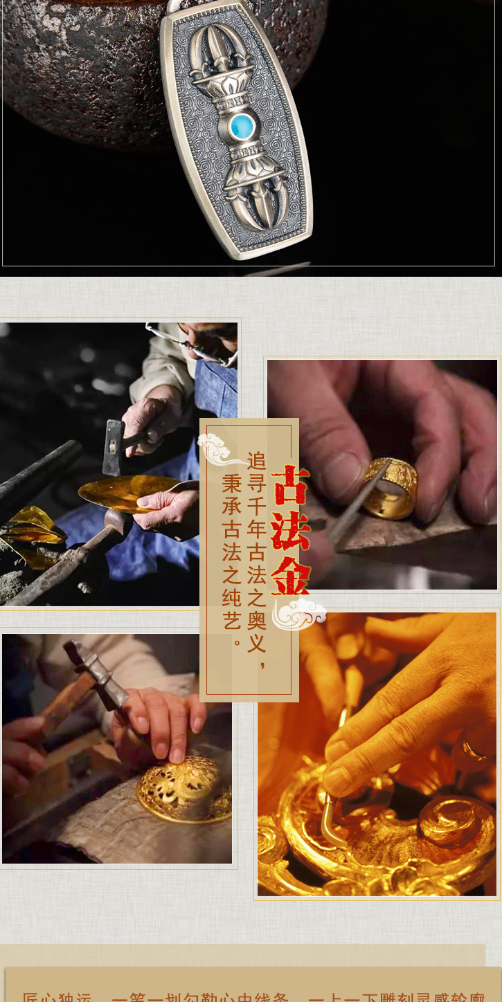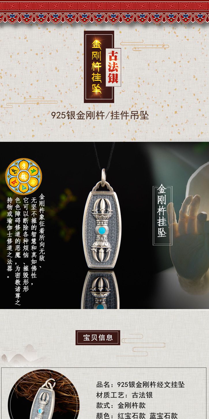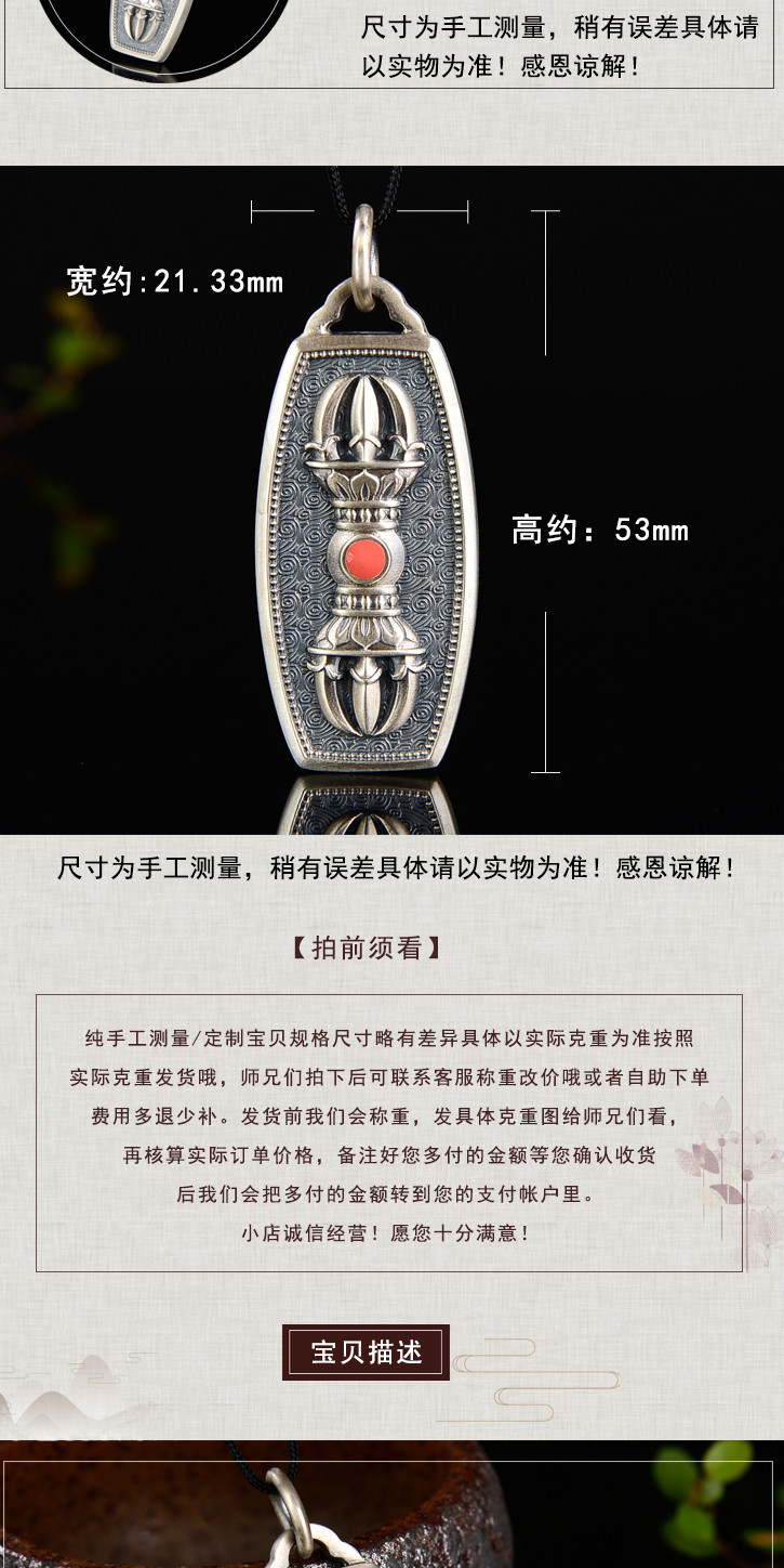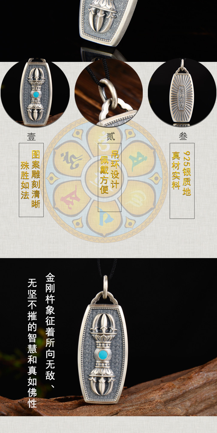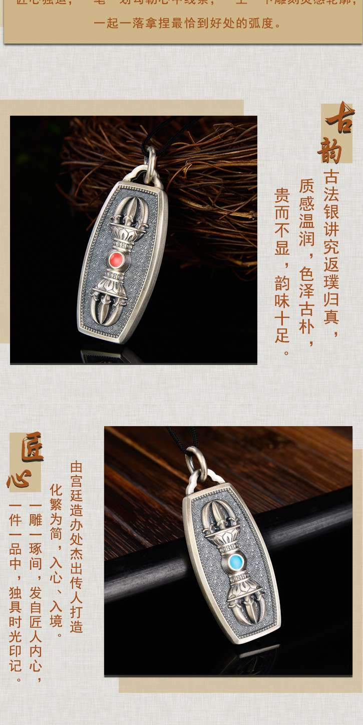 银古法银珐琅工艺金刚杵挂件吊坠金刚杵挂坠情侣款
