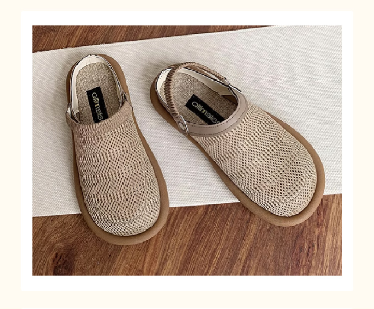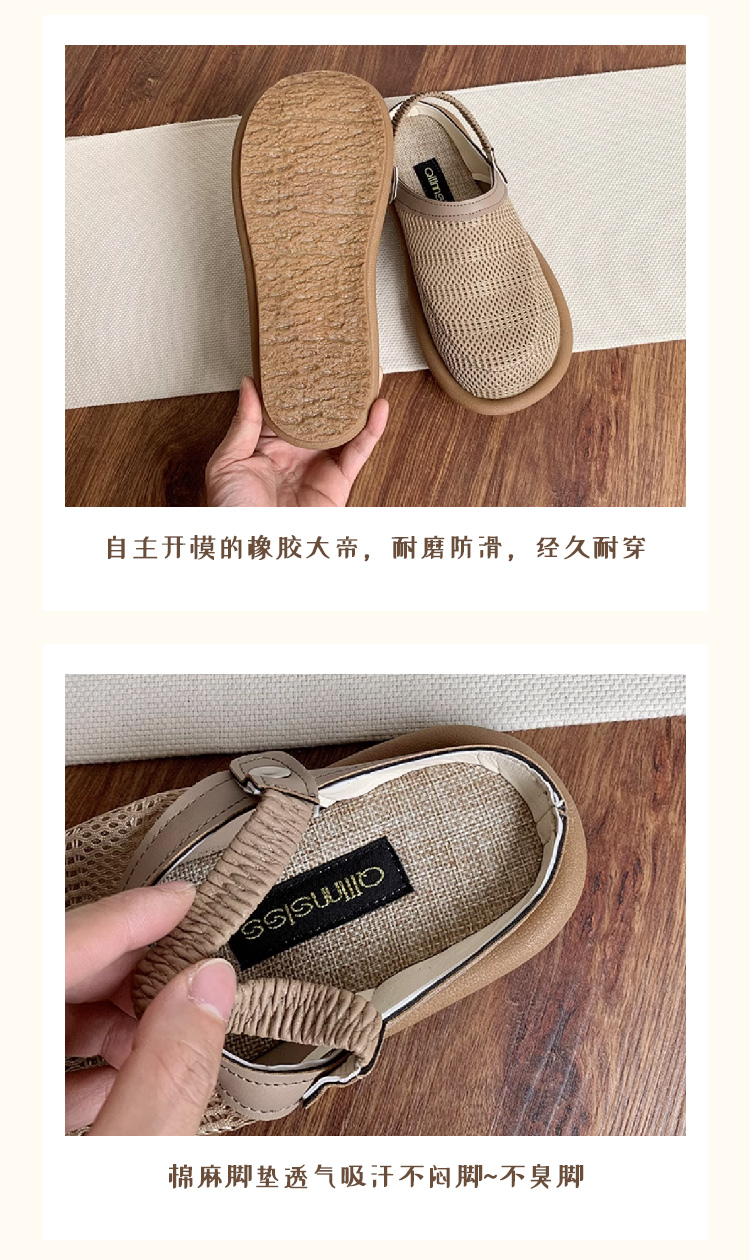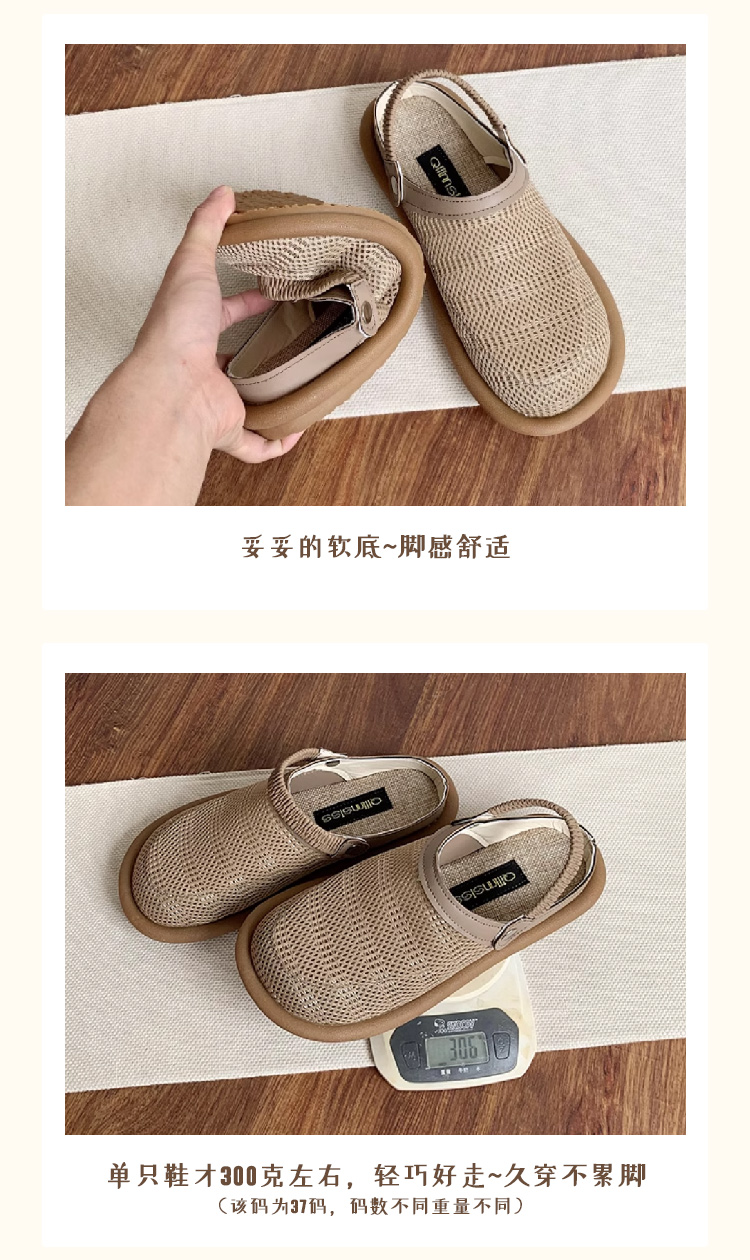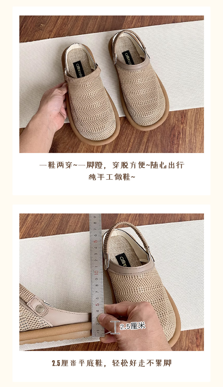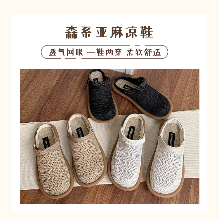 夏季亚麻凉鞋女一鞋两穿软底包头半拖鞋外穿透气网眼一脚蹬洞洞鞋