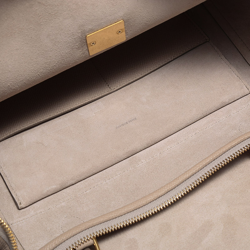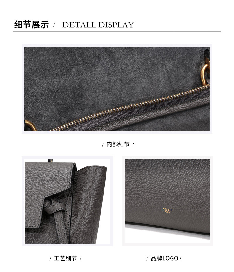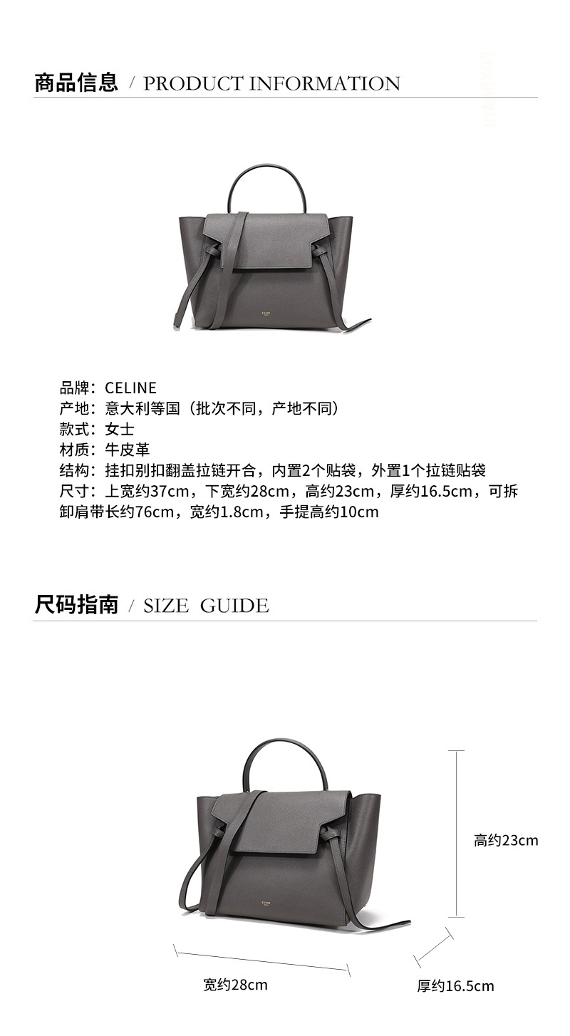 品牌:CELINE/赛琳产地:意大利等国(批次不同,产地不同)款式:女士颜色:浅灰褐色材质:牛皮结构:挂扣别扣翻盖拉链开合,内置1个主袋,2个贴袋,外置1个拉链贴袋尺寸:上宽约37cm,下宽约28cm,高约23cm,厚约16.5cm,可拆卸肩带长约76cm,宽约1.8cm,手提高约10cm(注:所有尺寸皆为手工测量,存在误差,请以实物为准!)