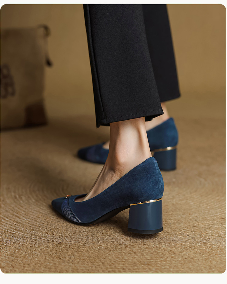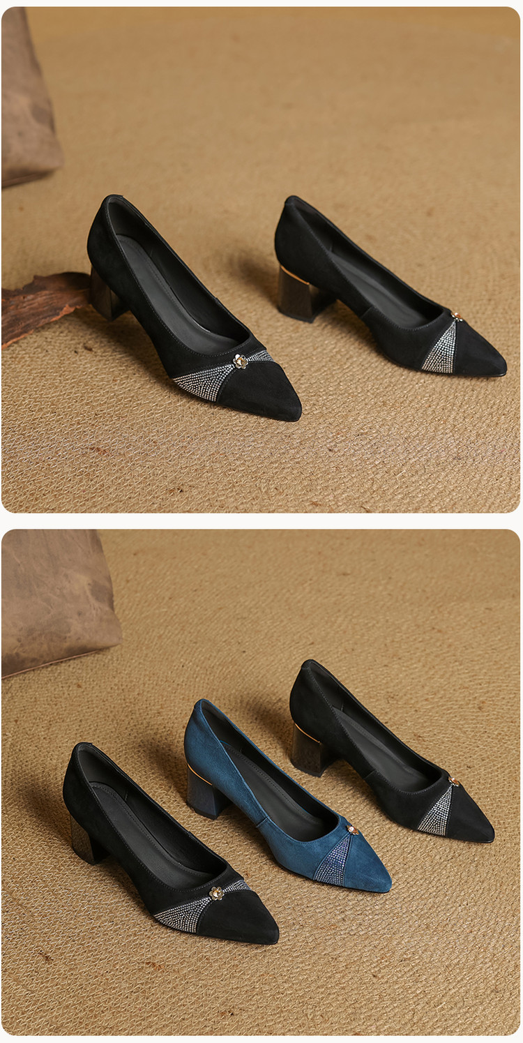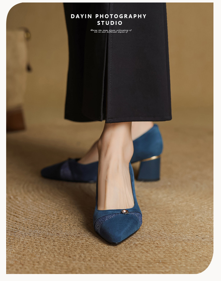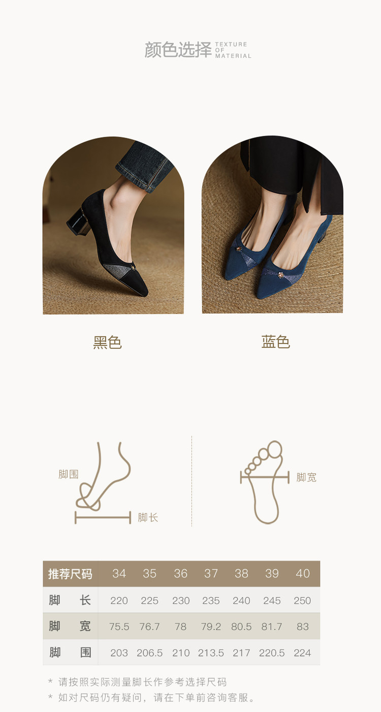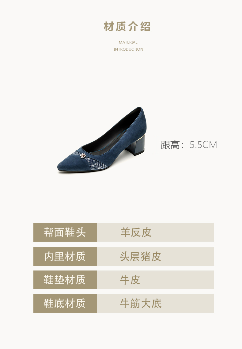 【鞋面材质】羊反皮【内里材质】头层猪皮【鞋垫材质】头层牛皮【鞋 底】牛筋大底【跟 高】5.5CM【掌 宽】7CM左右【颜 色】黑色、蓝色【尺 码】34-40(大小定制不退换)