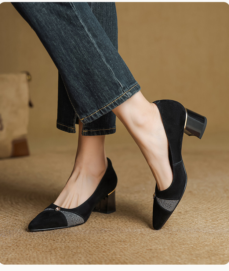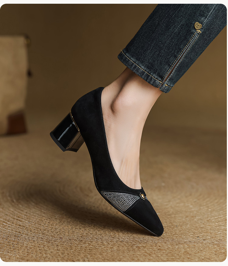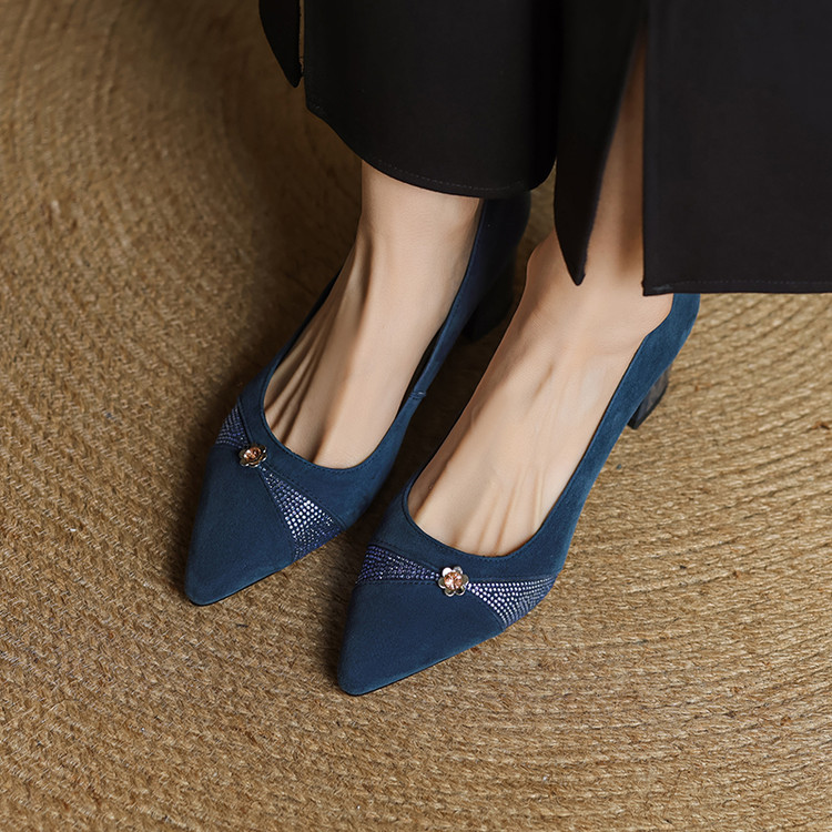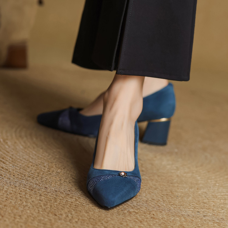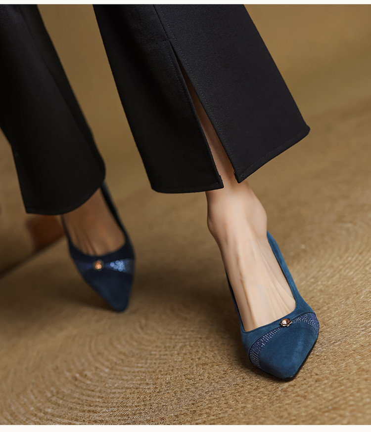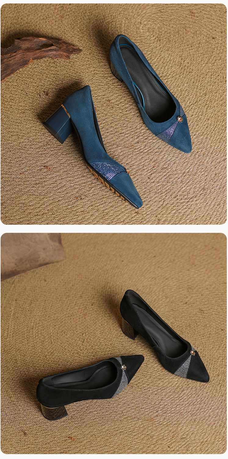 【鞋面材质】羊反皮【内里材质】头层猪皮【鞋垫材质】头层牛皮【鞋 底】牛筋大底【跟 高】5.5CM【掌 宽】7CM左右【颜 色】黑色、蓝色【尺 码】34-40(大小定制不退换)