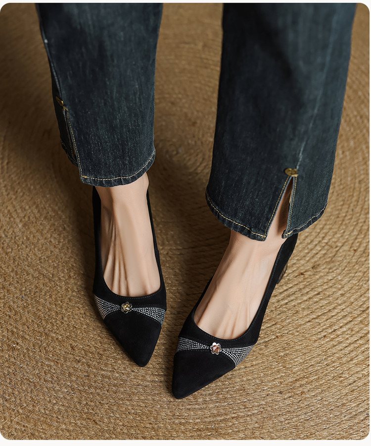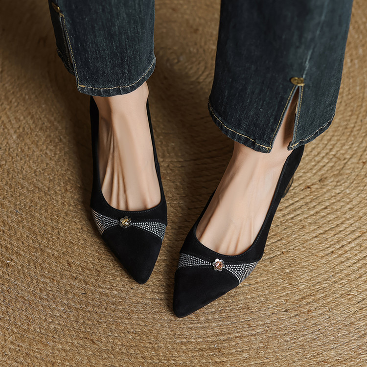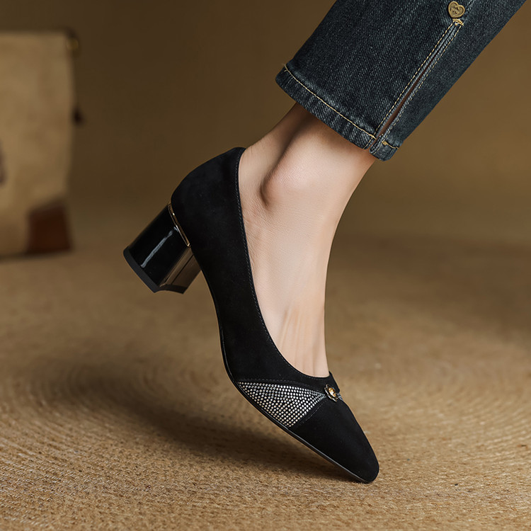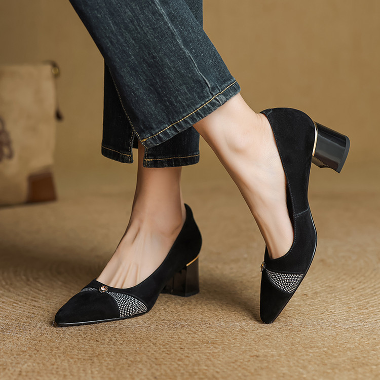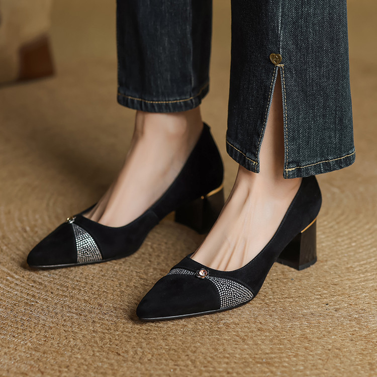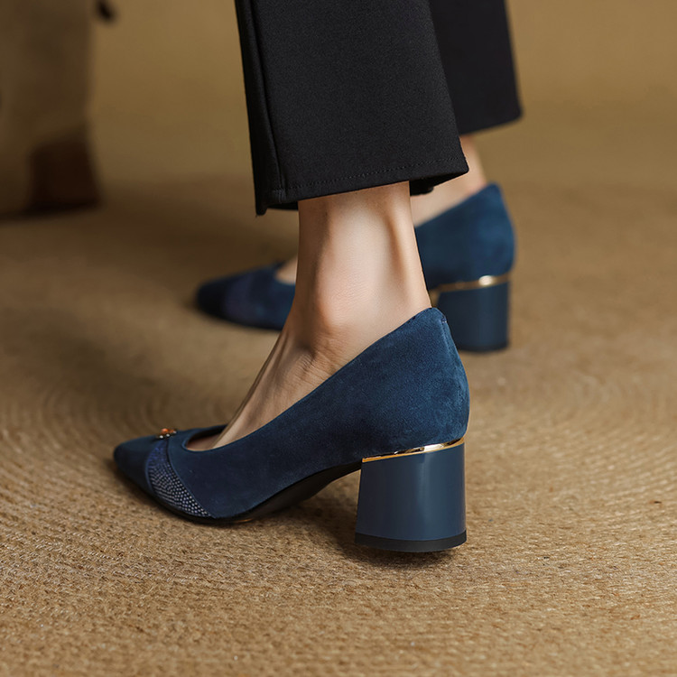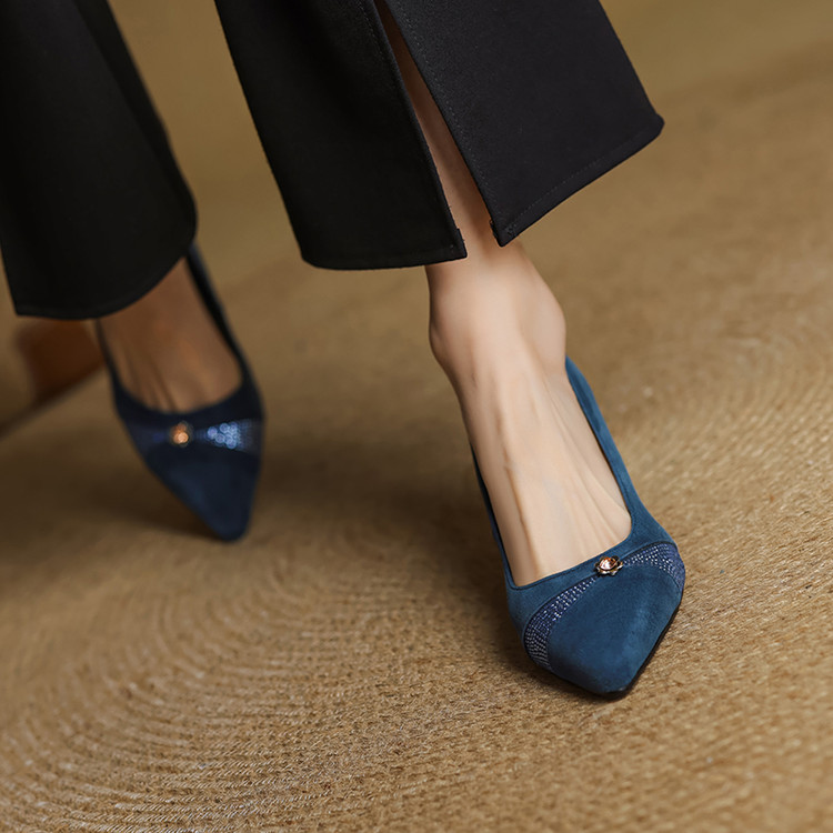 【鞋面材质】羊反皮【内里材质】头层猪皮【鞋垫材质】头层牛皮【鞋 底】牛筋大底【跟 高】5.5CM【掌 宽】7CM左右【颜 色】黑色、蓝色【尺 码】34-40(大小定制不退换)