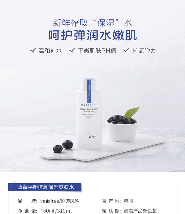 【韩国直邮】悦诗风吟 济州岛蓝莓水油平衡爽肤水150ml【一个身份证一个订单】