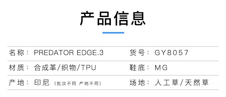 ADIDAS/阿迪达斯PREDATOR EDGE.3 MG短钉猎鹰中端足球鞋男GY8057