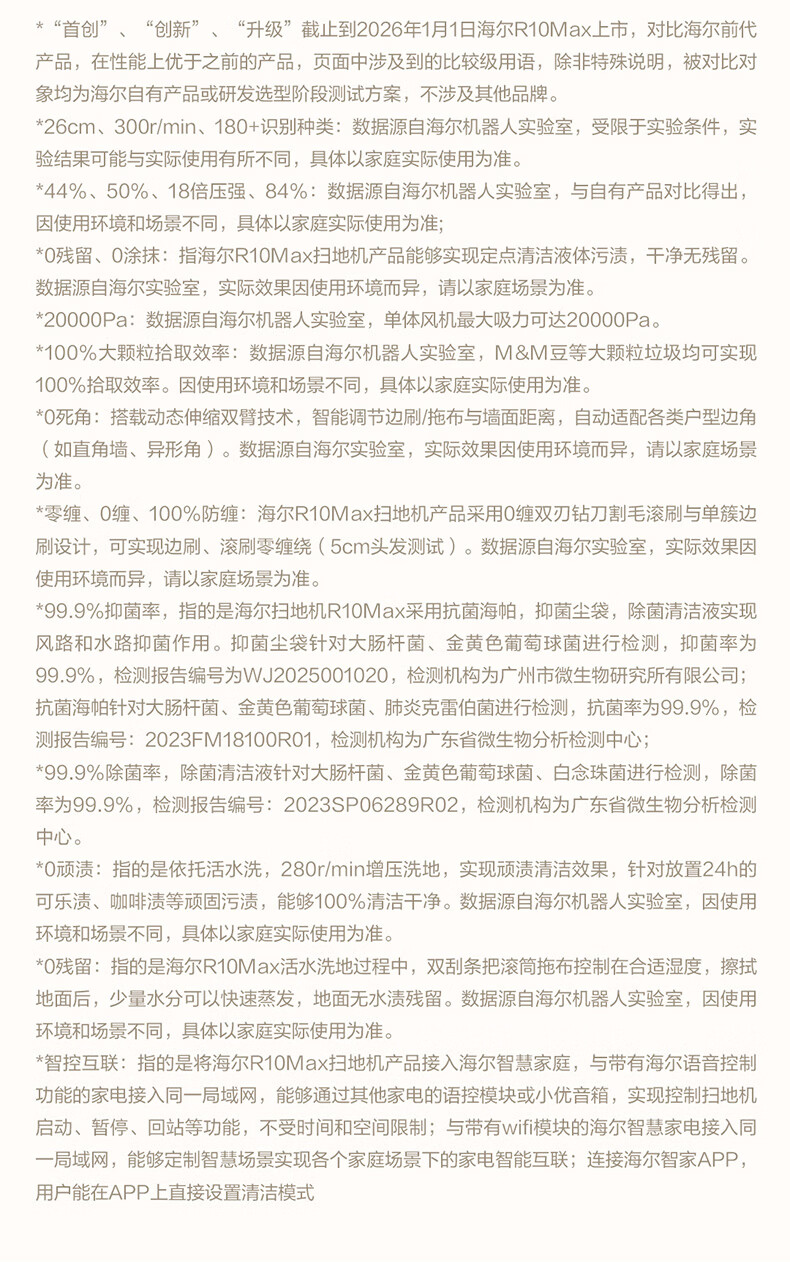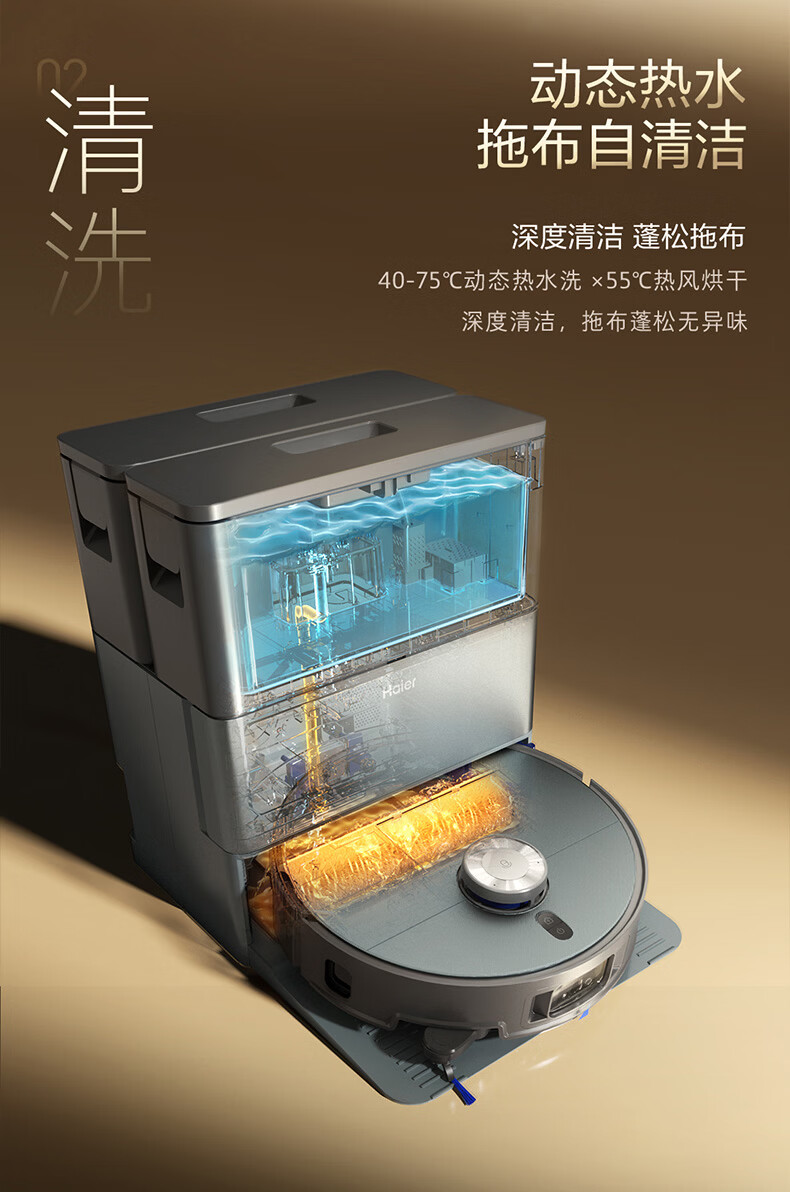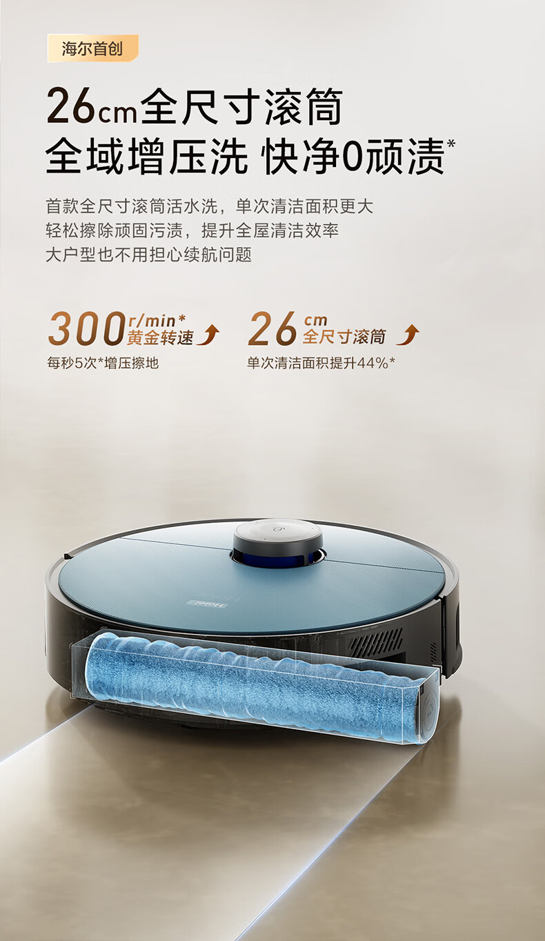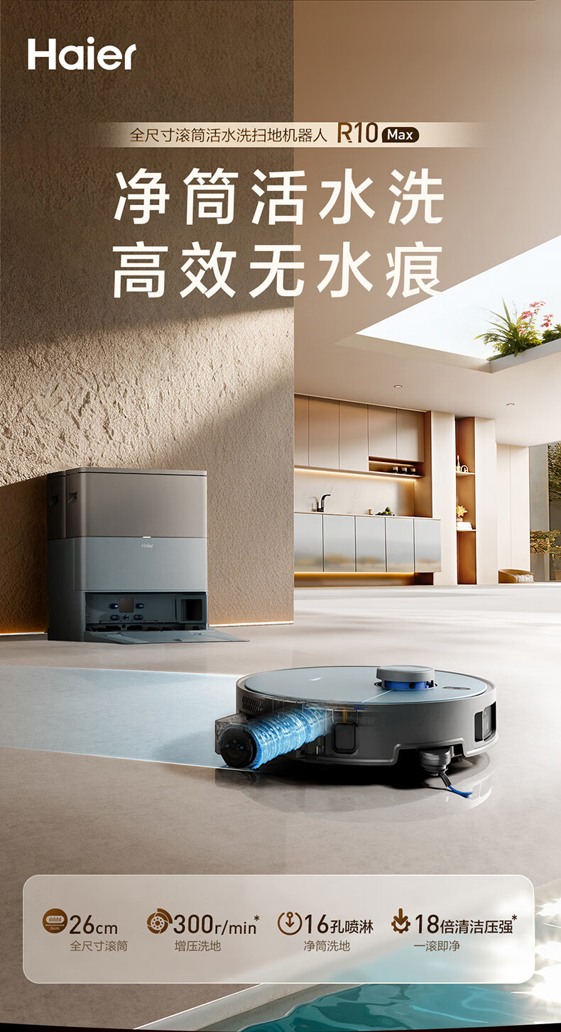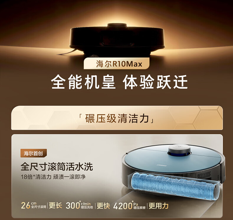 海尔(Haier)含光R10Max 京东专属扫地机器人扫拖洗烘一体滚筒洗地机器人自动集尘洗地机水箱版 RHSA-R10MaxU1