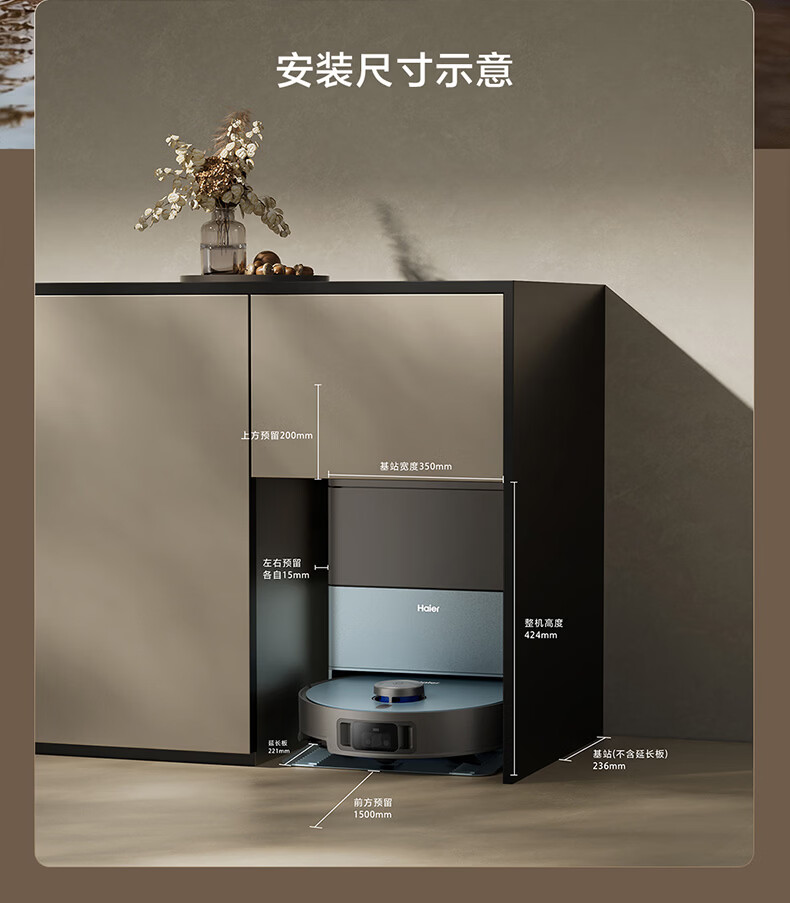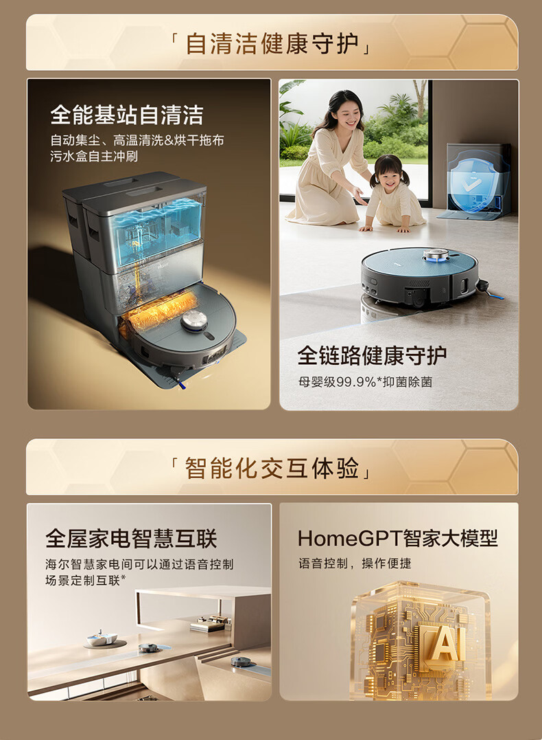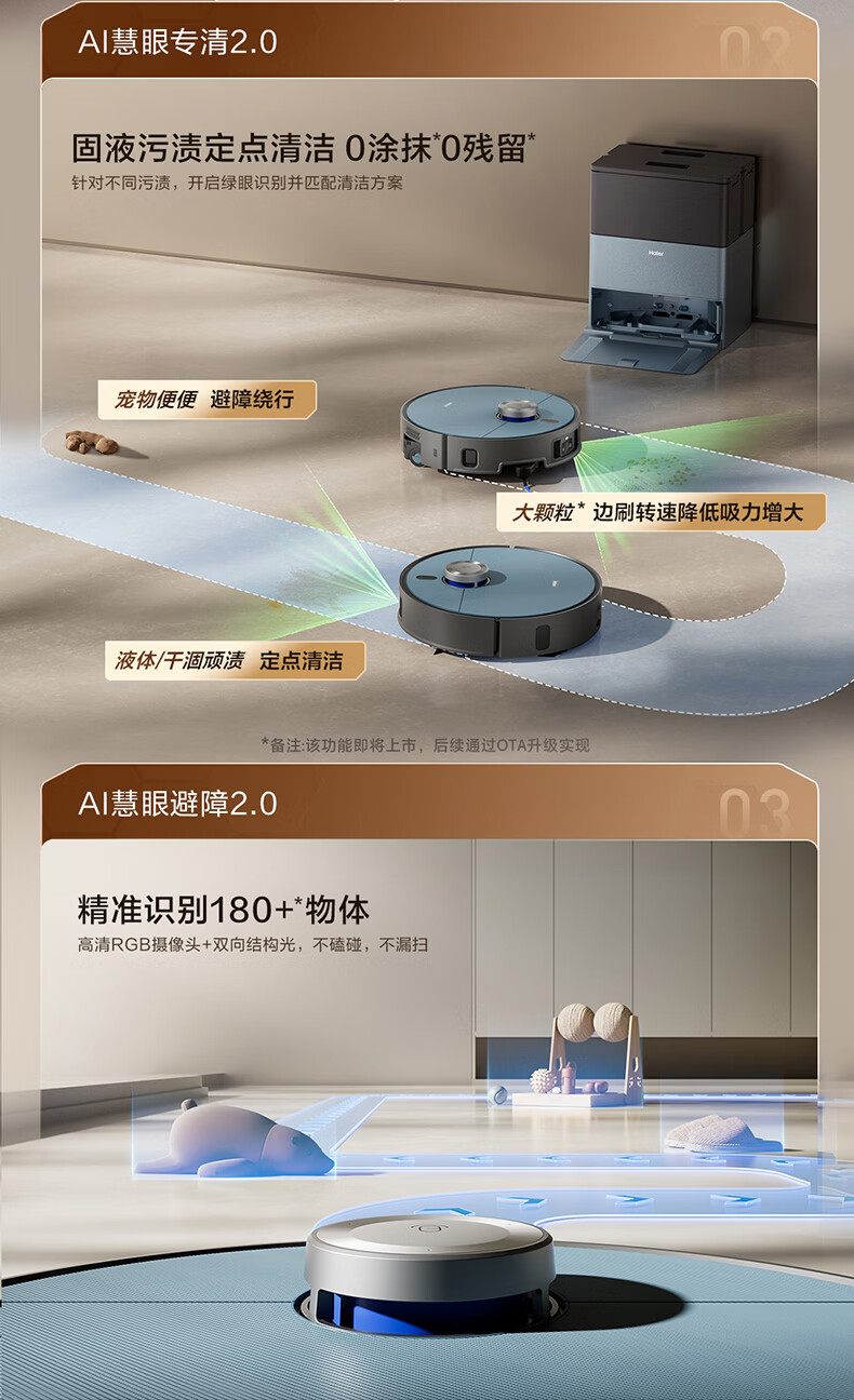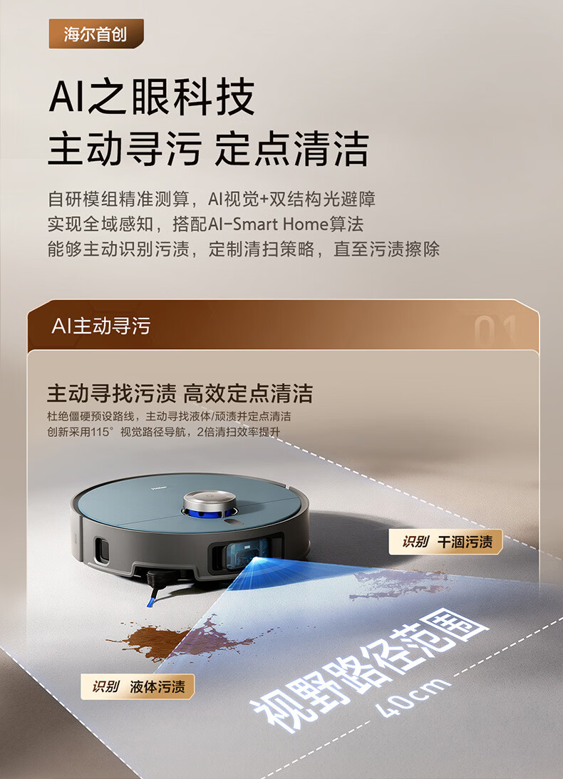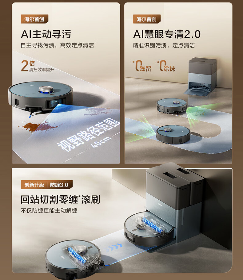 海尔(Haier)含光R10Max 京东专属扫地机器人扫拖洗烘一体滚筒洗地机器人自动集尘洗地机水箱版 RHSA-R10MaxU1