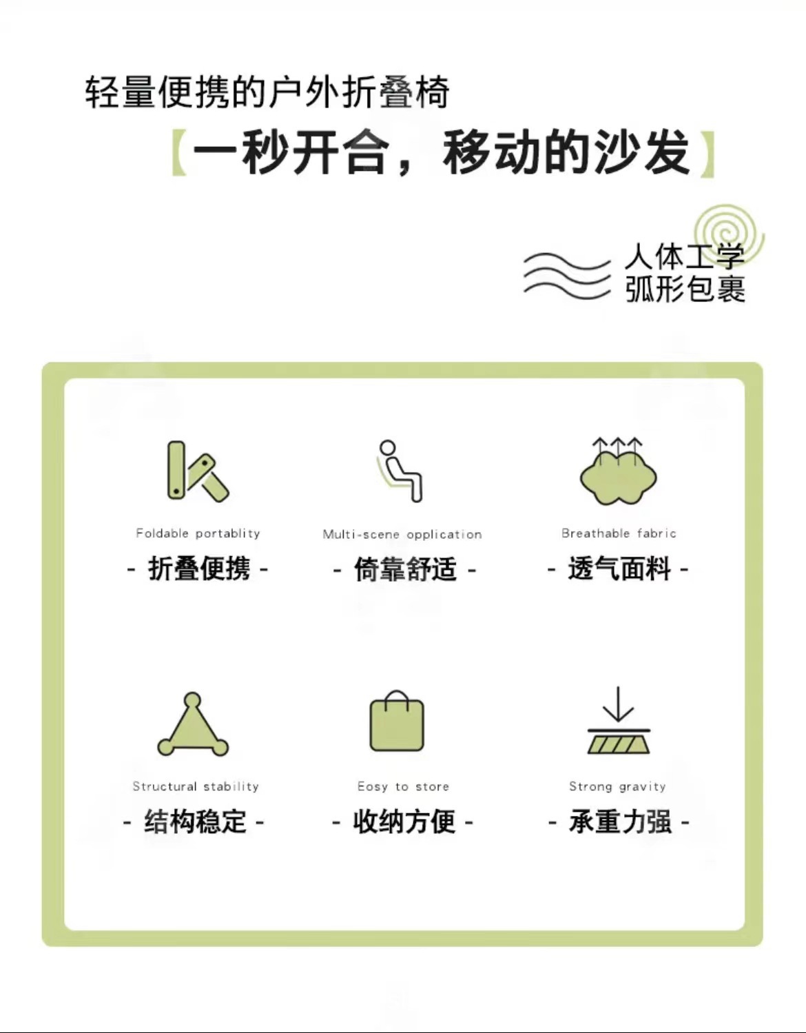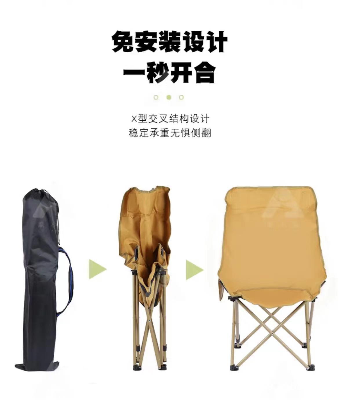 【一秒开合便携设计、加厚牛津布承重强】户外露营折叠椅便携式月亮椅钓鱼凳子摆摊懒人椅野营沙滩椅美术椅.TA