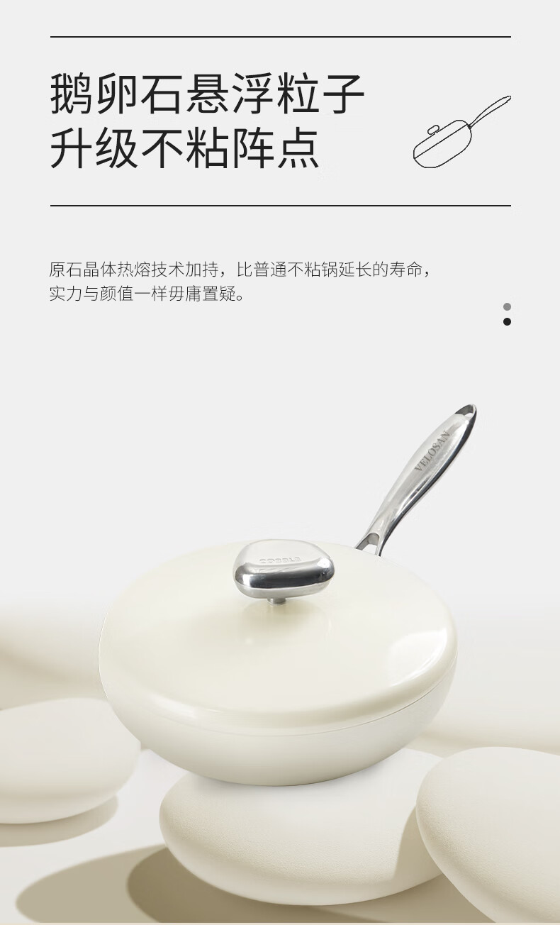 VELOSAN温仑山鹅卵石平底锅不粘锅煎蛋锅牛排锅麦饭石不粘锅煎锅电磁炉【伊藤优选302401】