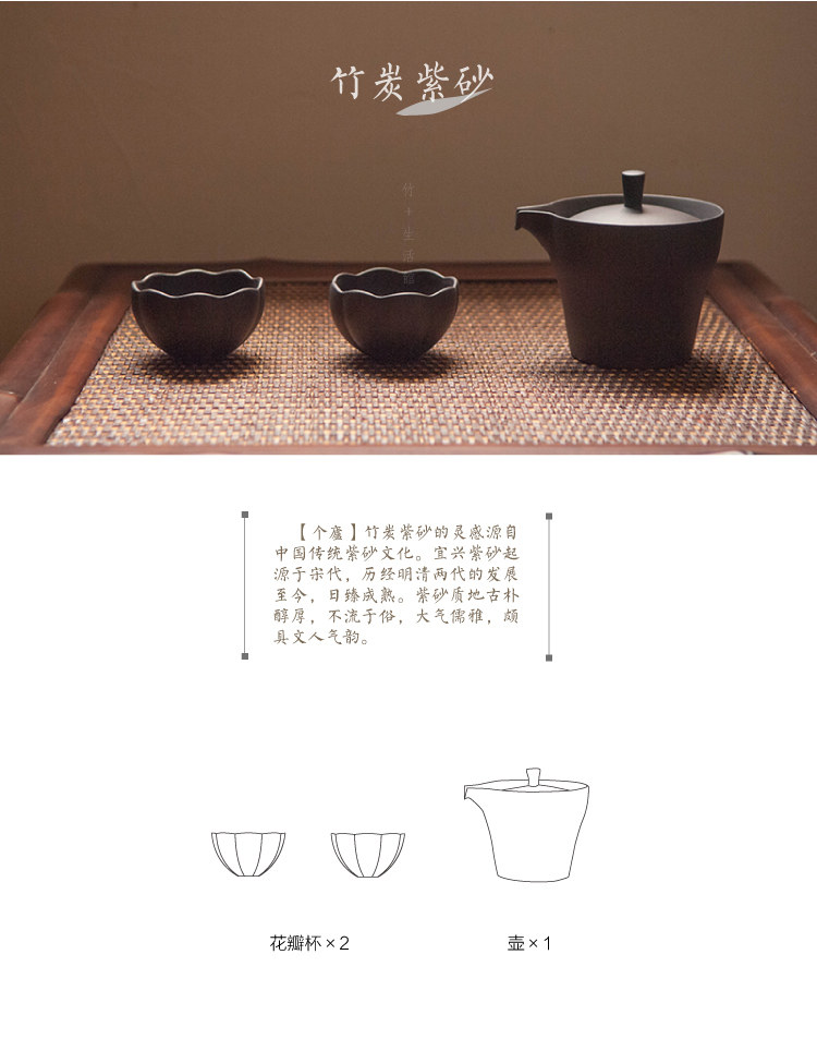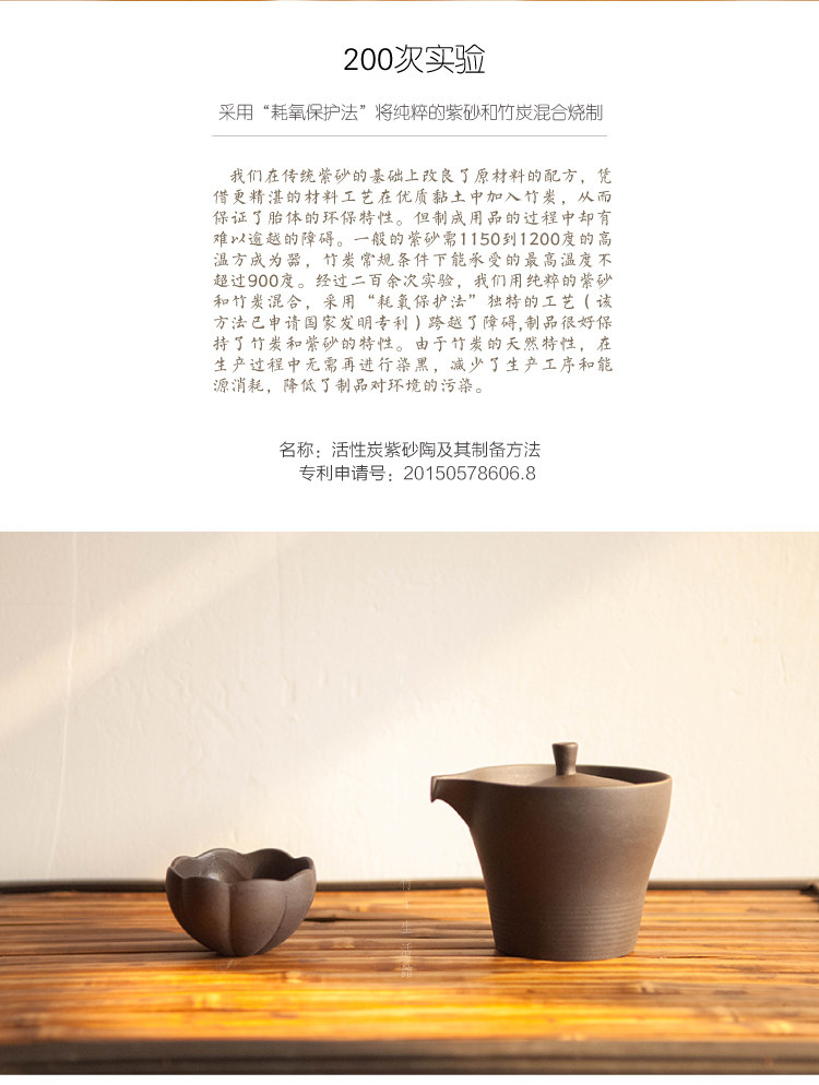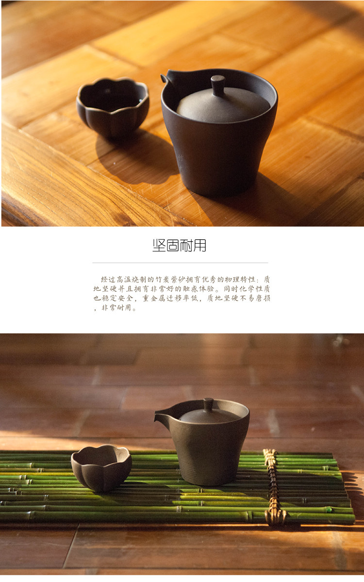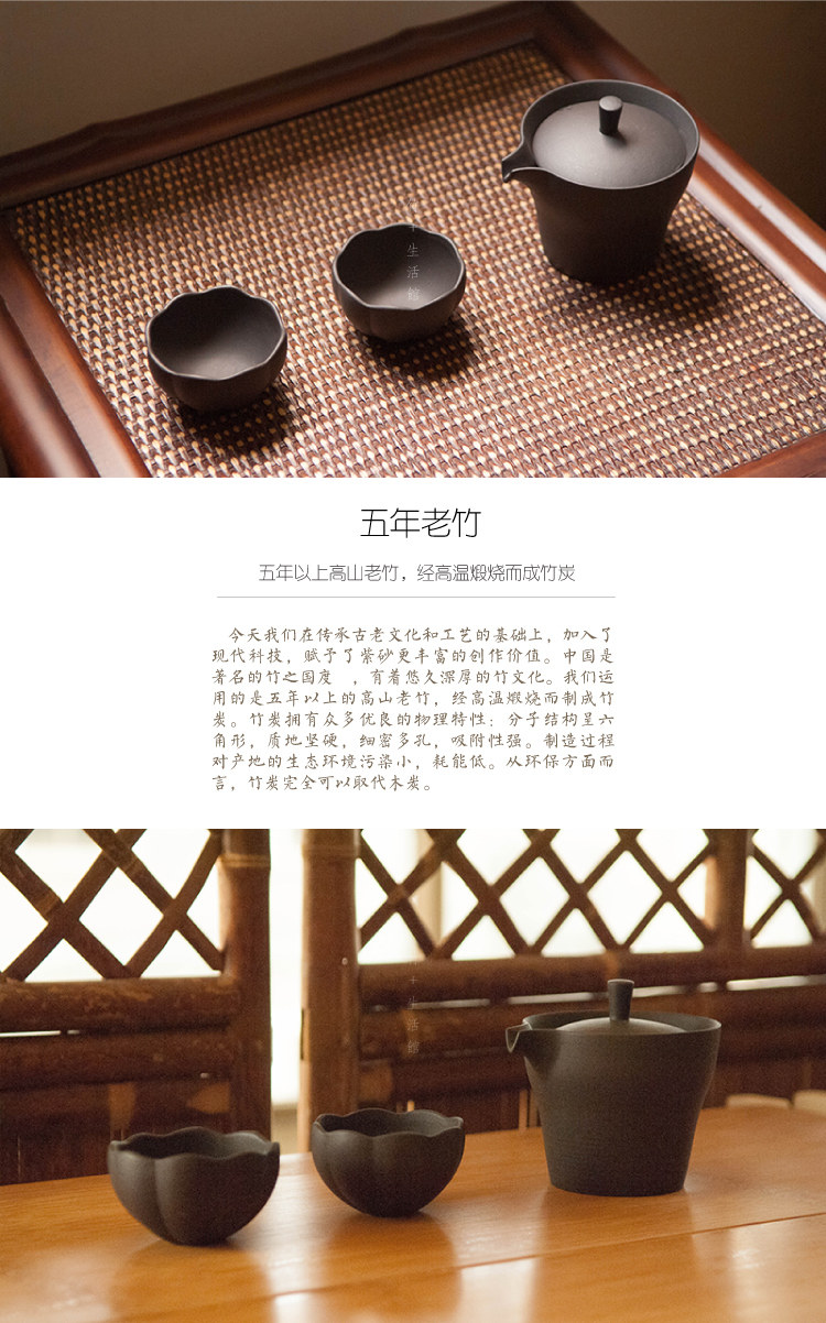 竹+竹炭陶一壶两杯套装 竹炭紫砂 茶具套装 个庐 茶道茶艺茶壶