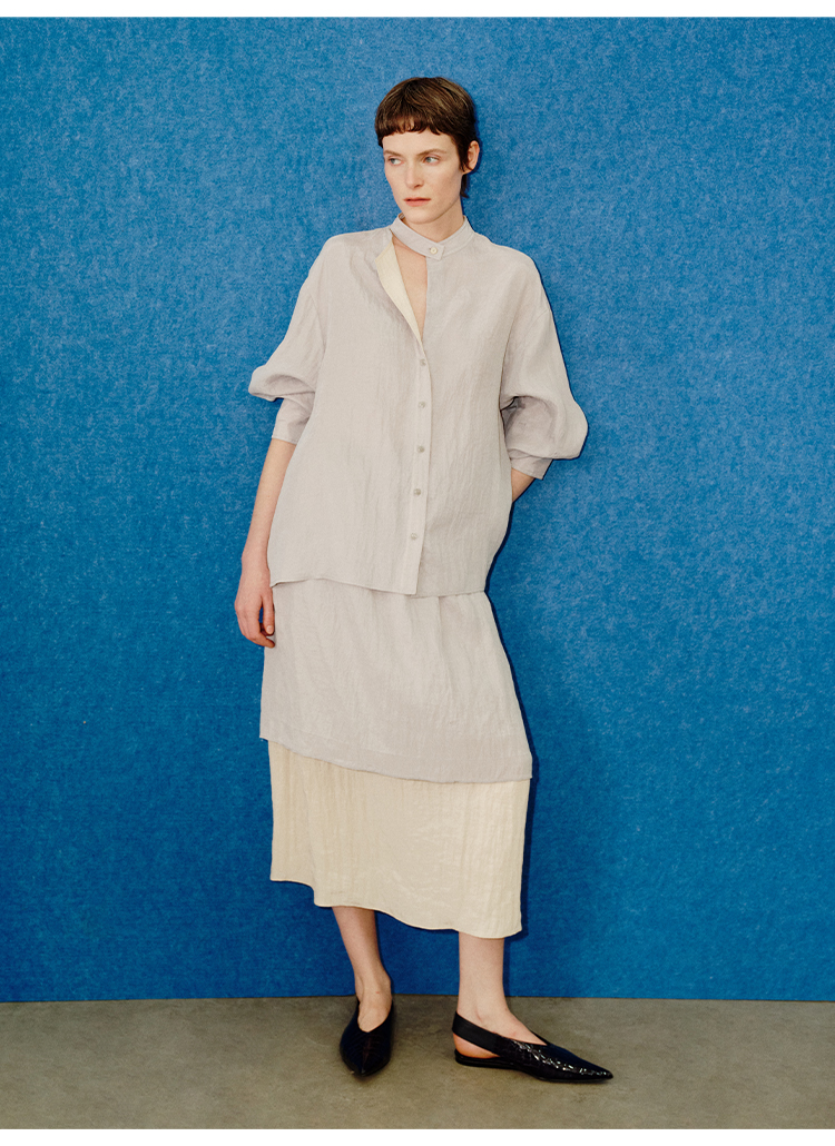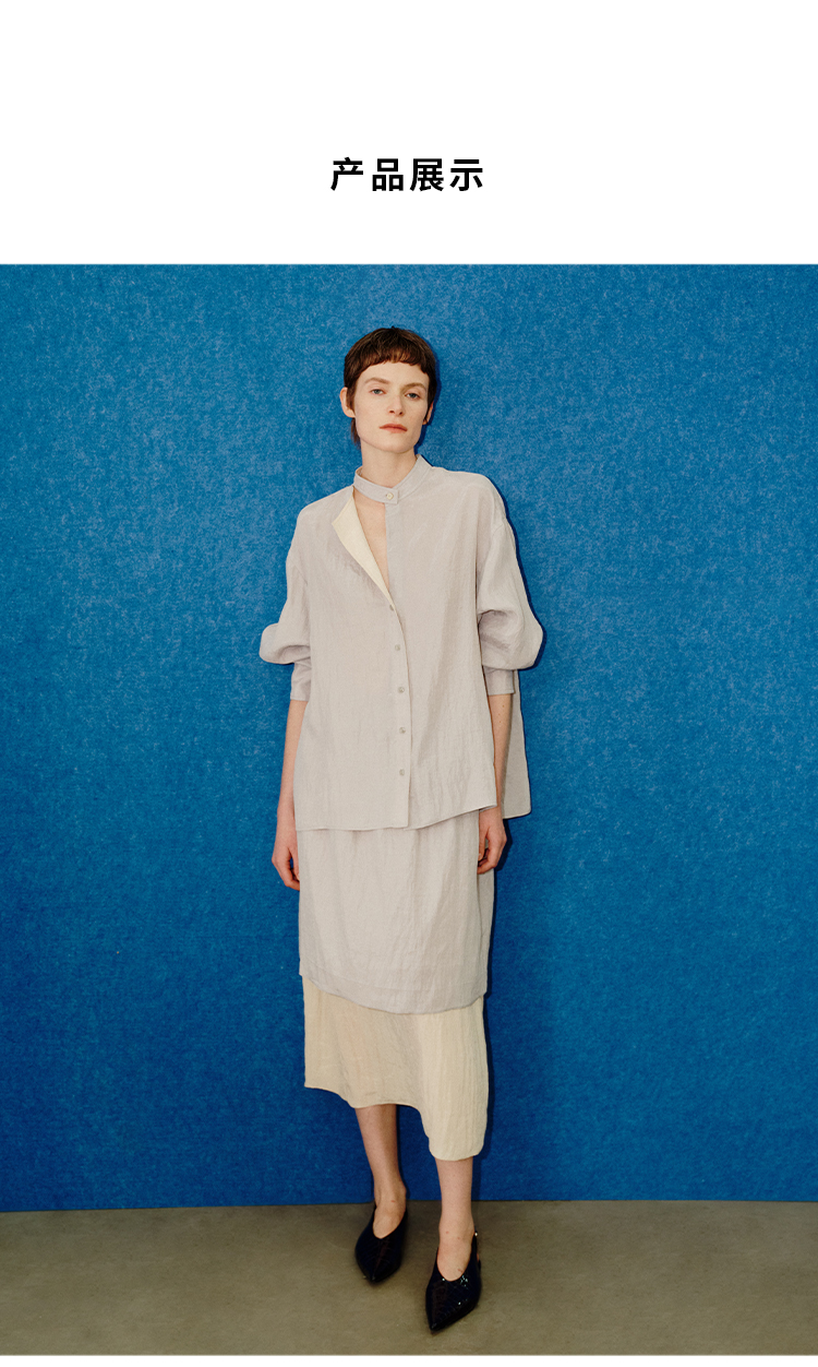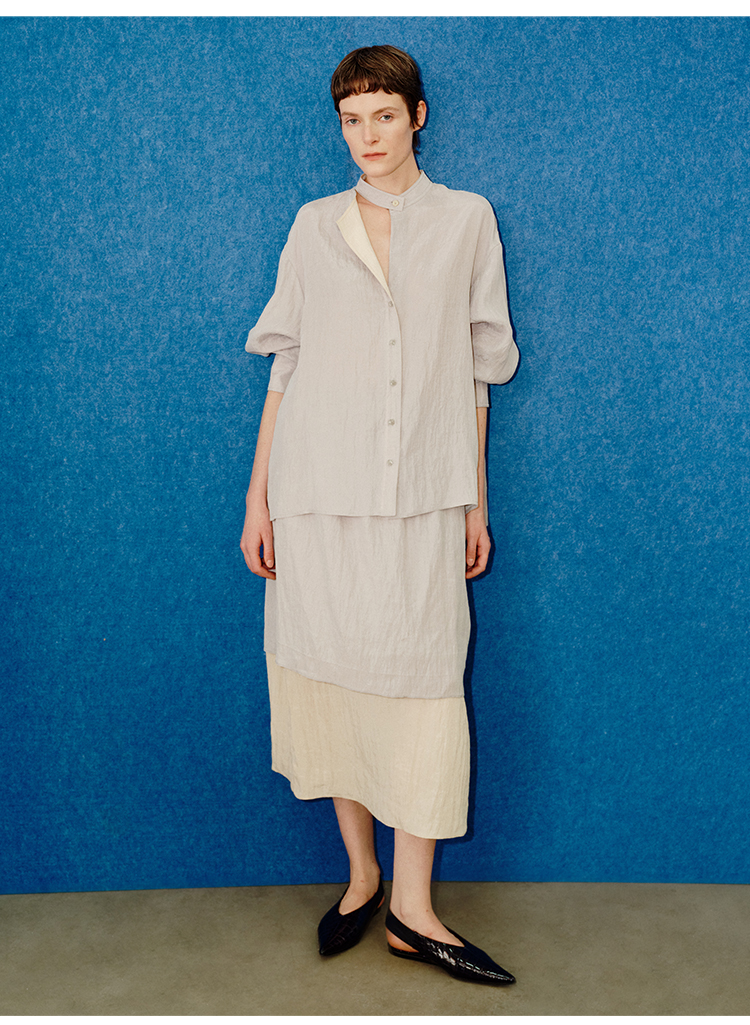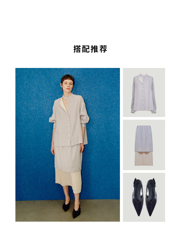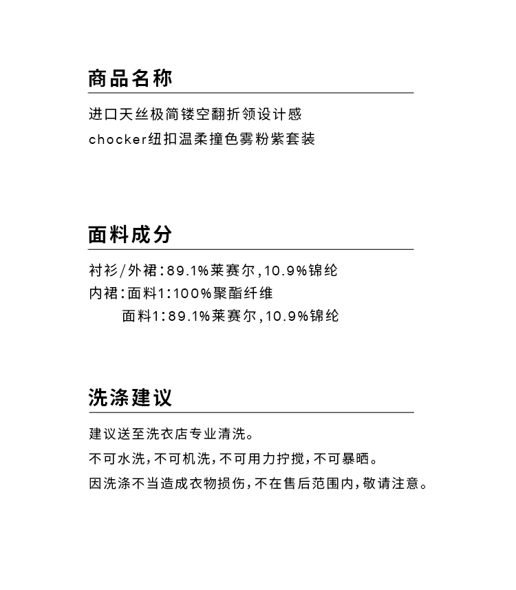 HIDEMI 进口天丝极简镂空翻折领设计感chocker纽扣温柔撞色雾粉紫套装